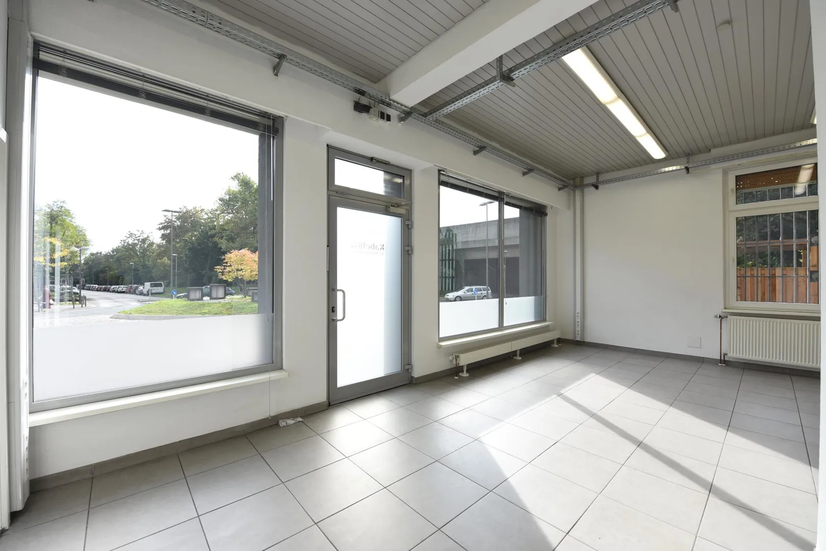 Die Schaufenster-Front ist ca. 6 Meter lang, nach Süden ausgerichtet und mit Innen-Jalousien ausgestattet. Die Schaufenster wurden 2006 gegen neue Schallschutz-Aluminiumfenster ausgetauscht.