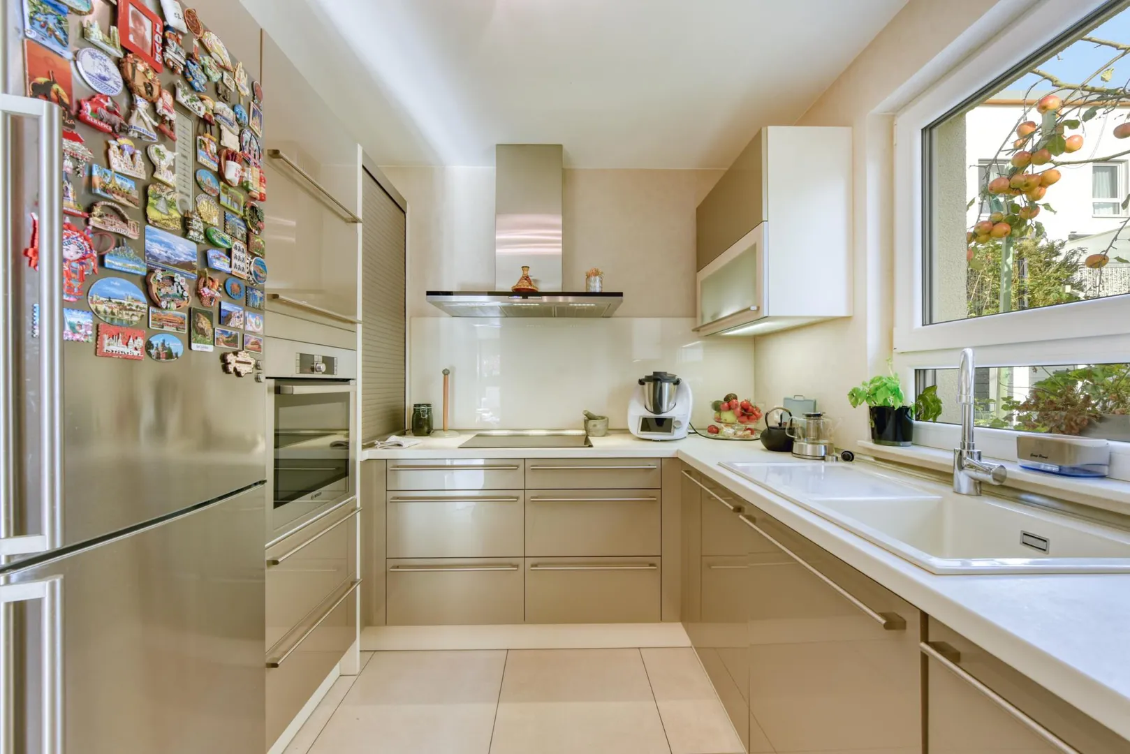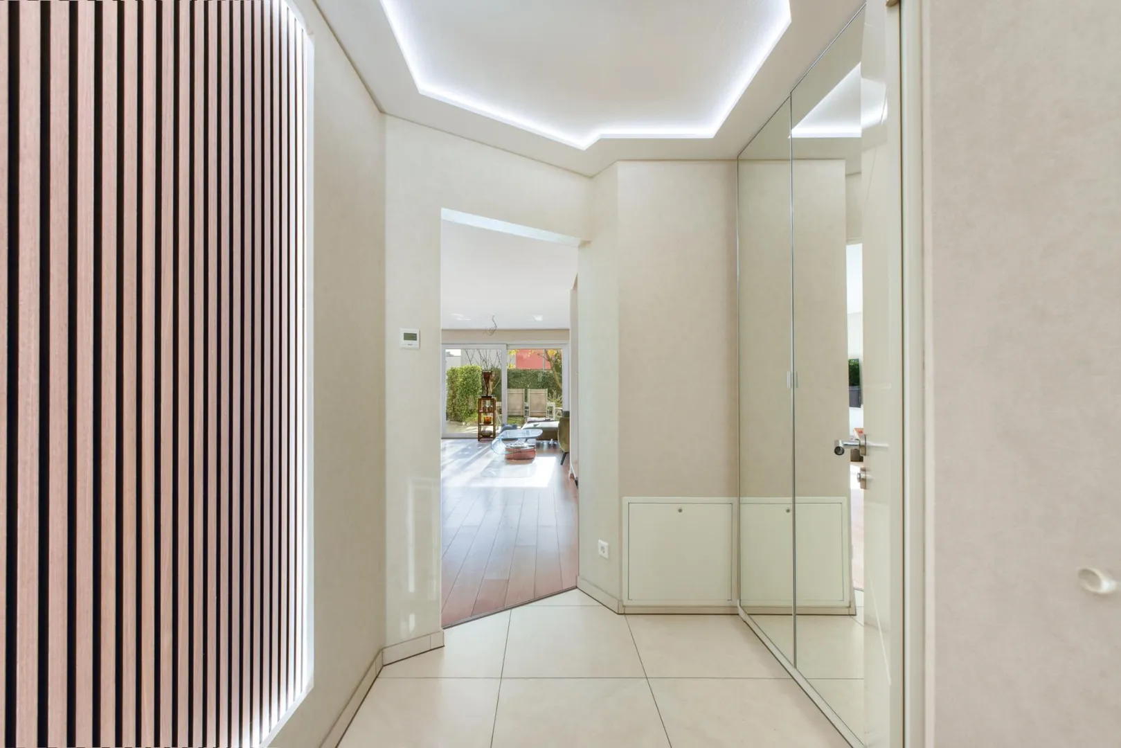 Die Böden im Eingangsbereich, im WC sowie in der Küche sind gefliest. Im Wohn-/Essbereich ist Parkett verlegt. Die Terrasse verfügt über eine elektrische Markise.