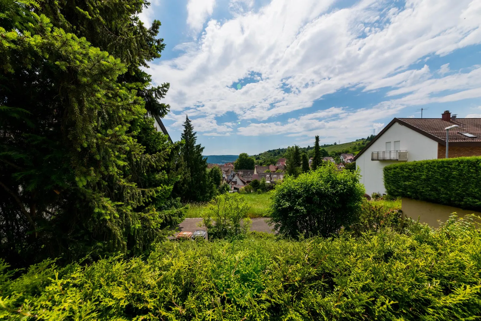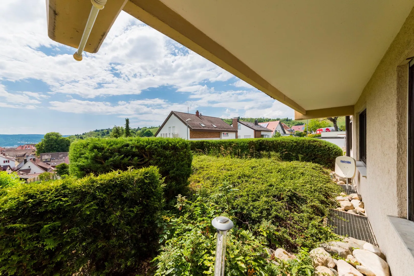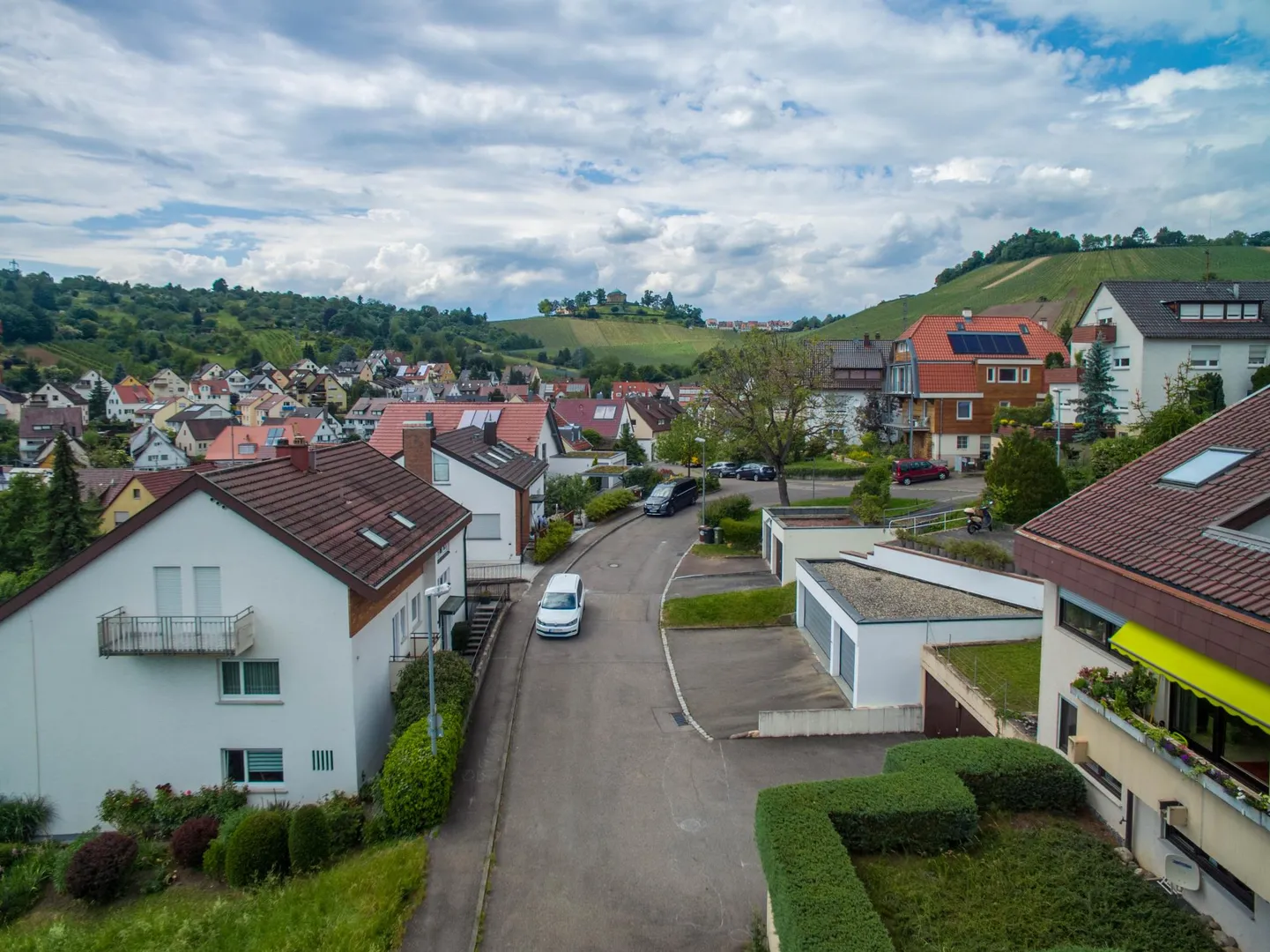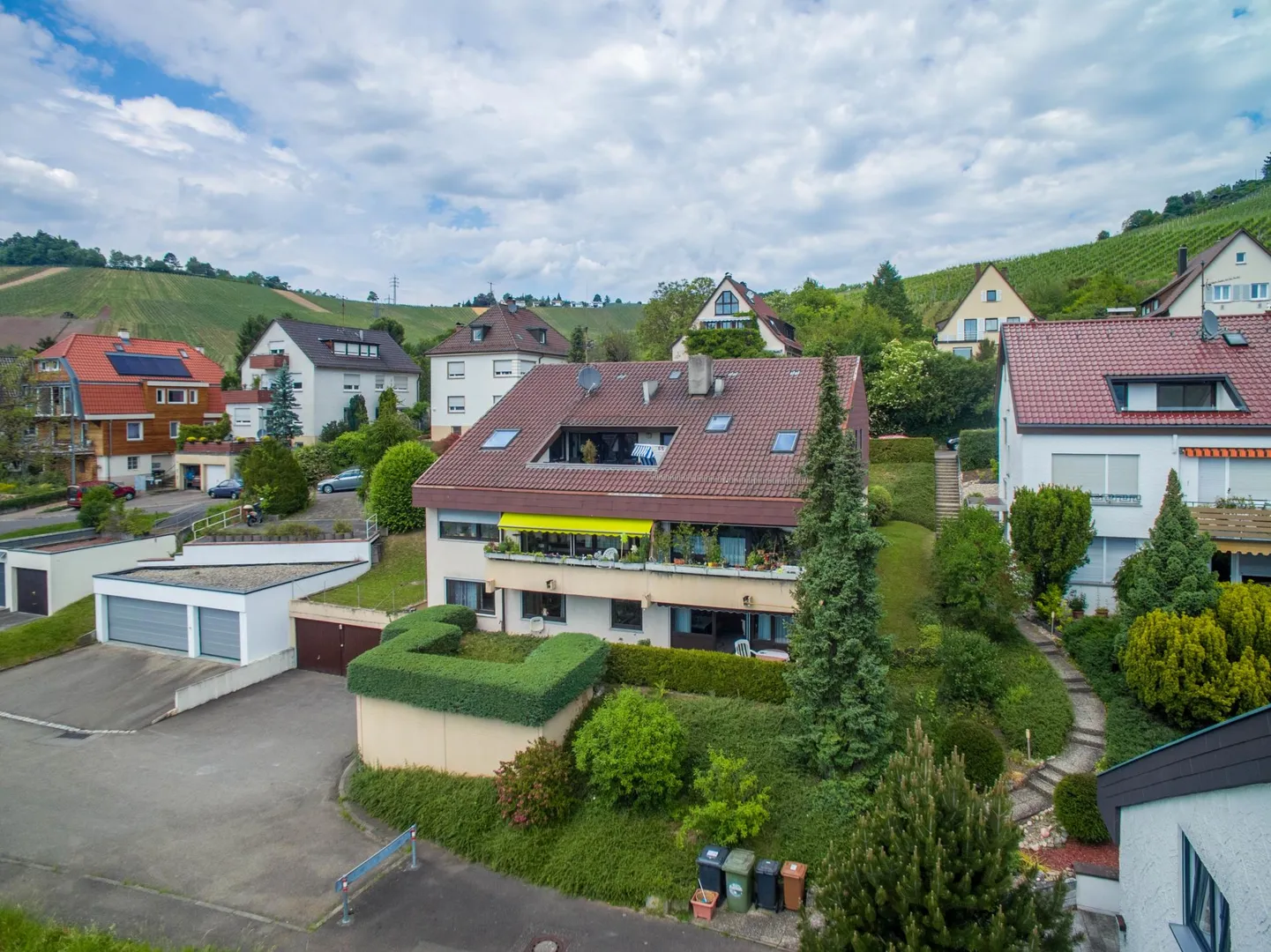 Die Wohnung befindet sich in Süd/West-Hanglage direkt an den Weinbergen in einer Sackgasse.