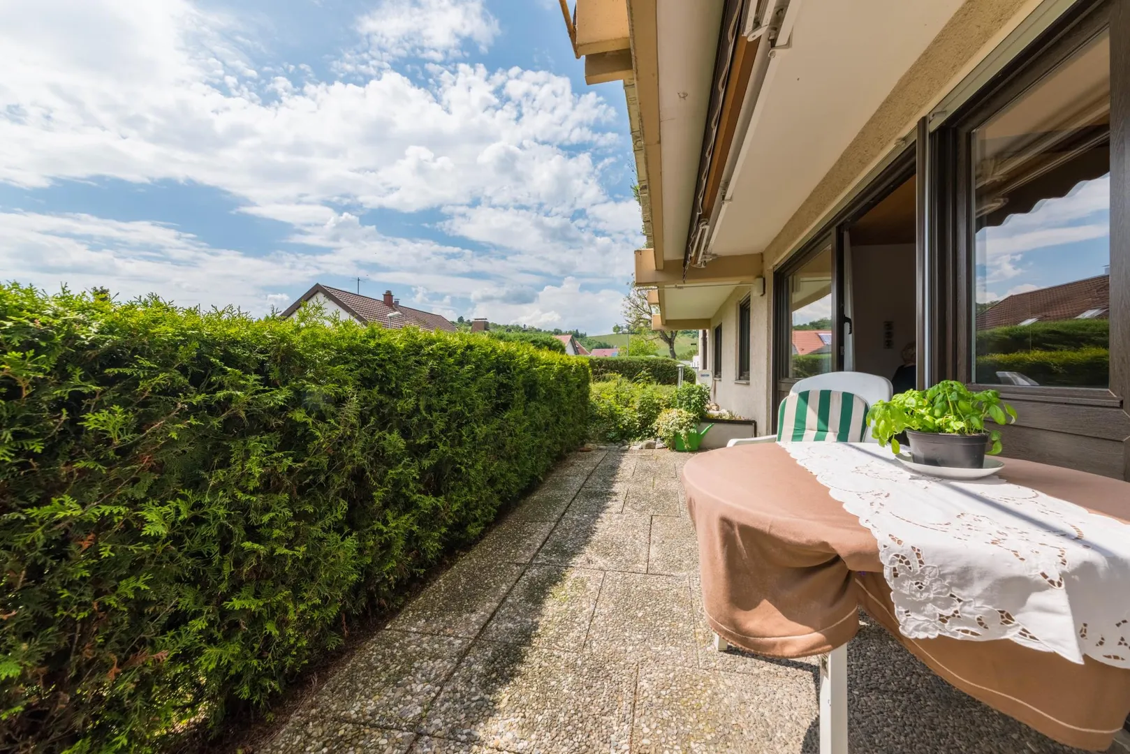 Diese 3-Zimmer-Wohnung befindet sich im Erdgeschoss mit Terrasse.