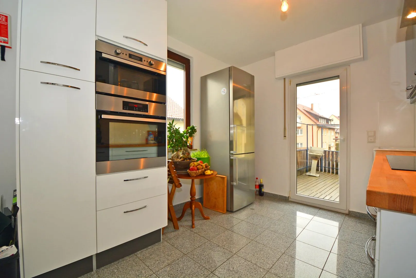 Die ca. 16 m² große Terrasse in westlicher Ausrichtung ist über die Küche begehbar.