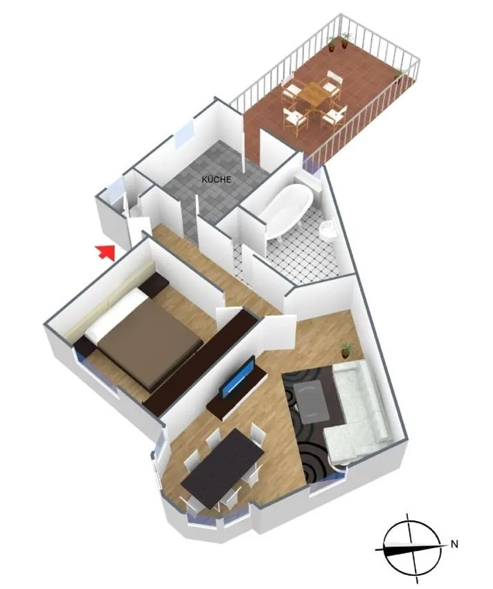 Der Grundriss der Wohnung ist gut. Jeder Raum ist vom Flur begehbar. Das Badezimmer verfügt über ein Fenster. Das geflieste WC mit Fenster ist separat.