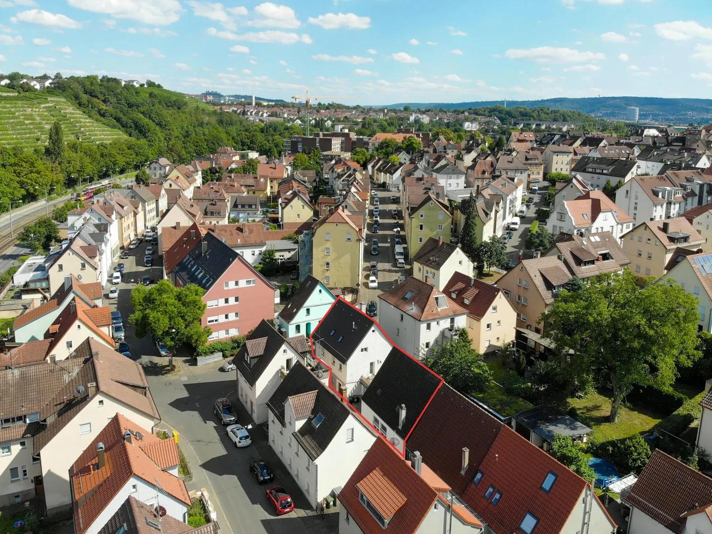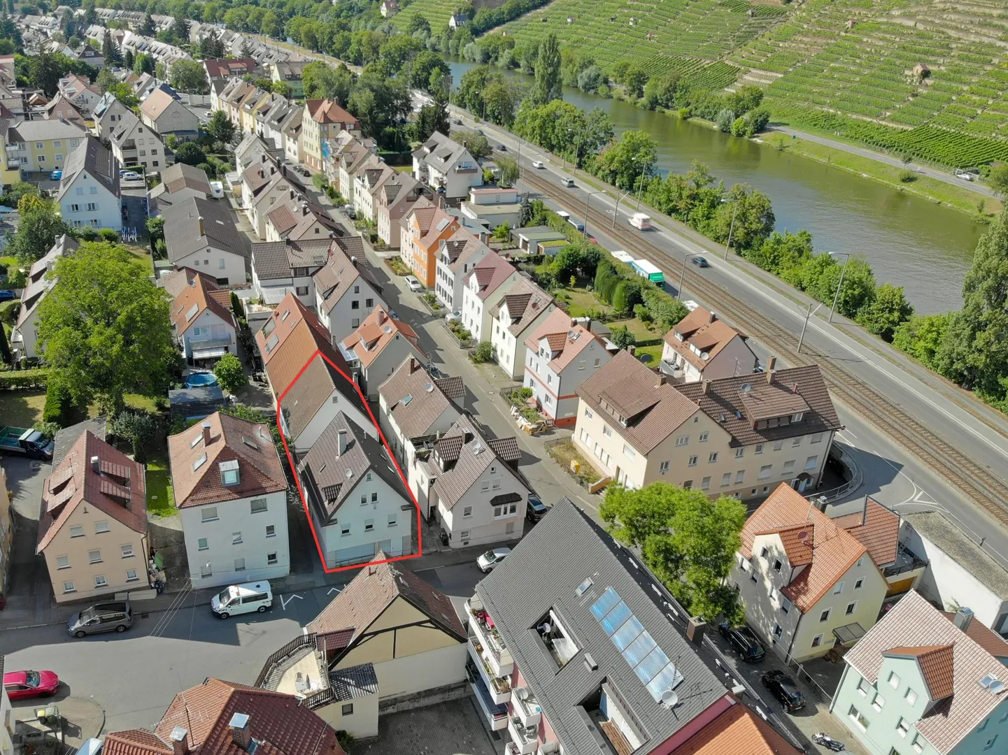 Das Haus befindet sich in einer ruhigen und grünen Umgebung nah am Neckar in einer Ost-Hanglage.
