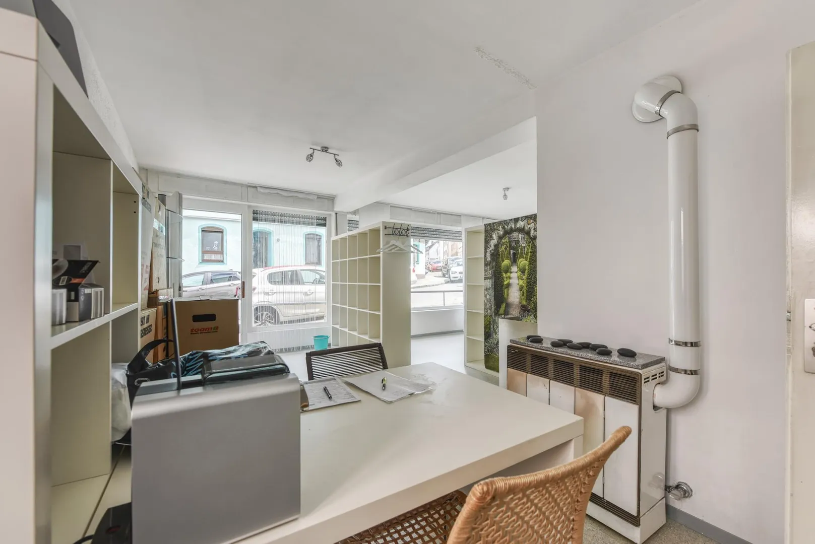 Der Laden im Erdgeschoss ist für 320 EUR monatlich als Büro vermietet. Die Kündigungsfrist beträgt 6 Monate zum Ende eines Kalendervierteljahres.