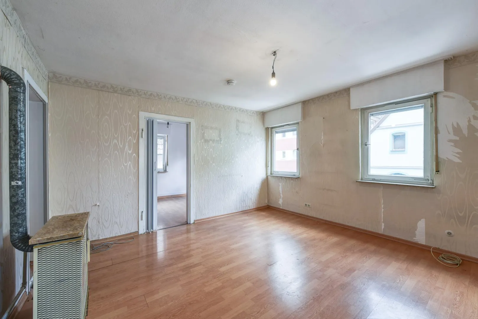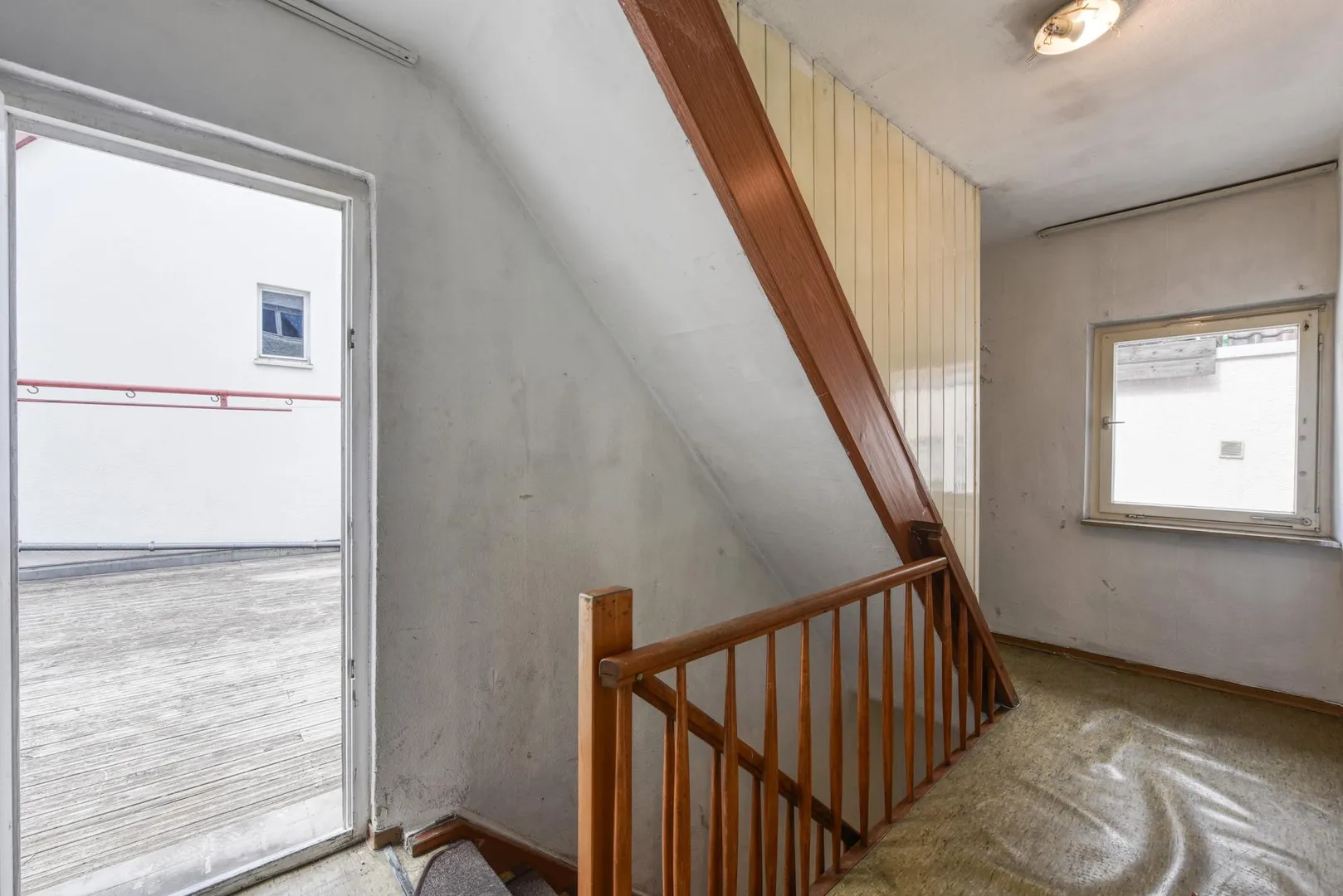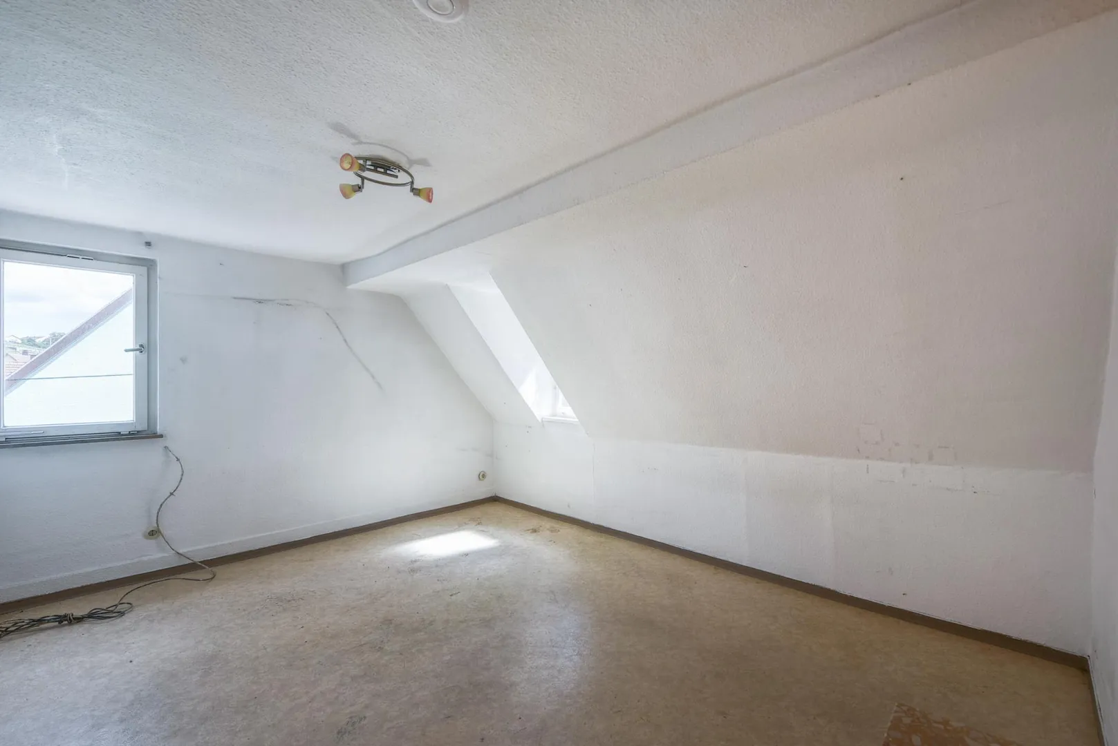 Die Wohneinheiten im Ober- und Dachgeschoss sind frei und stehen leer.