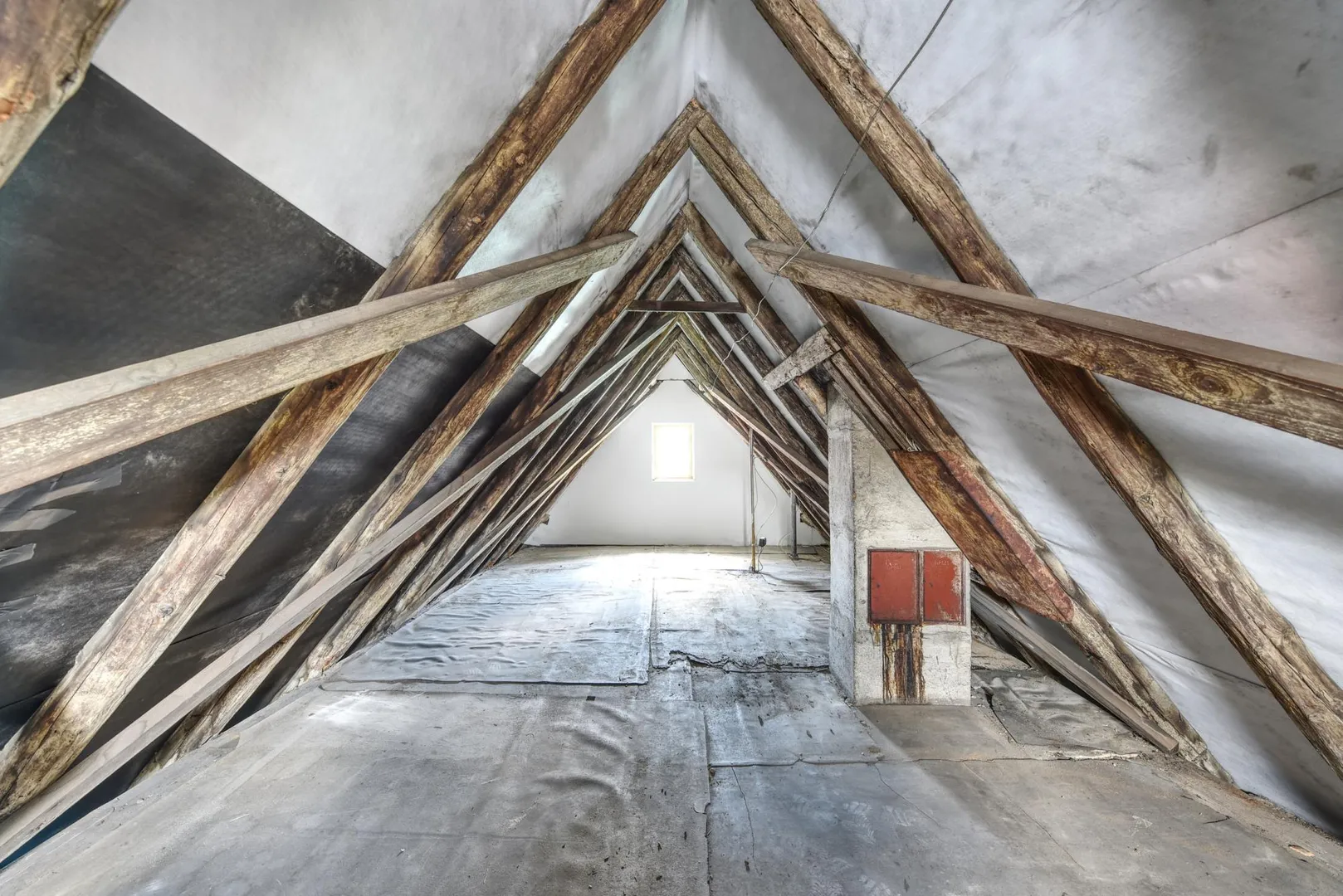 Die 2-Zimmer-Wohnung im Dachgeschoss hat eine DIN-Wohnfläche von ca. 30 m². Die Beheizung erfolgt über zwei Gas-Einzelöfen. Die Raumhöhe beträgt ca. 2,06 Meter.