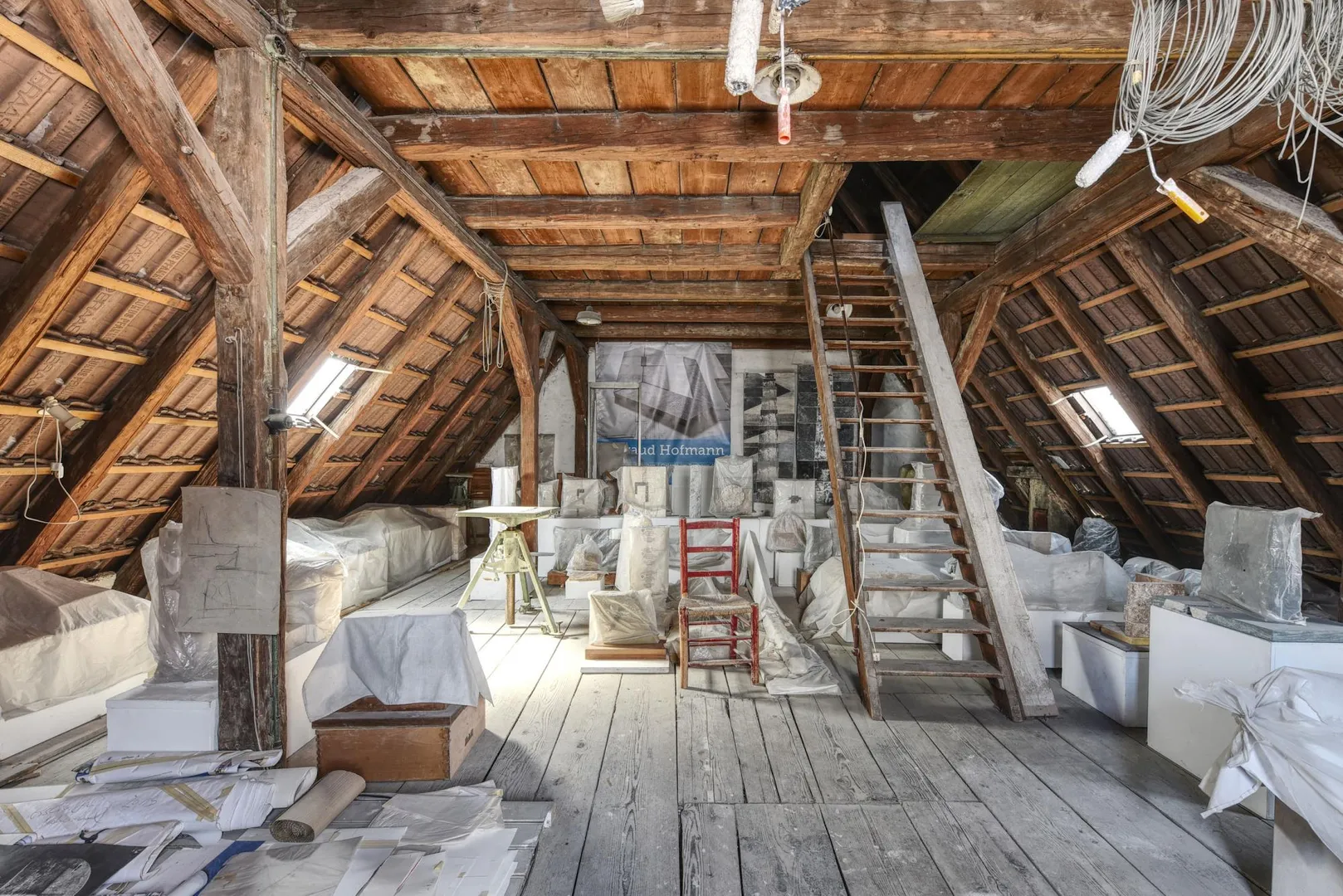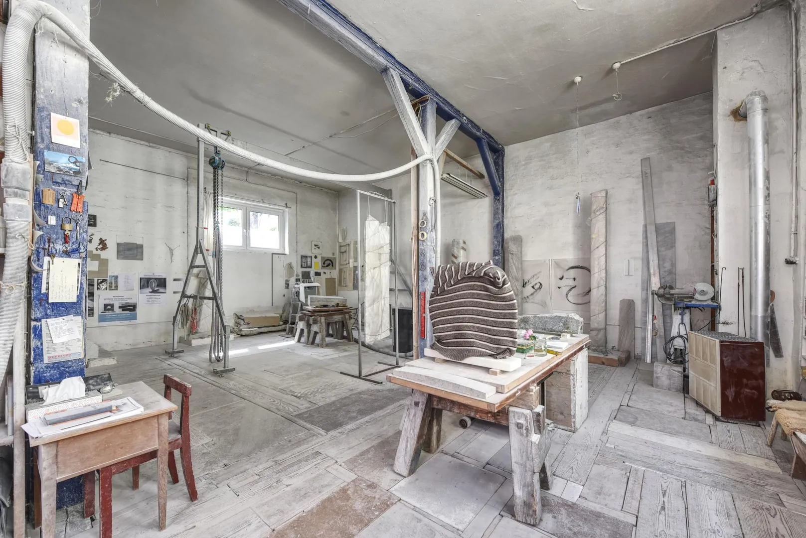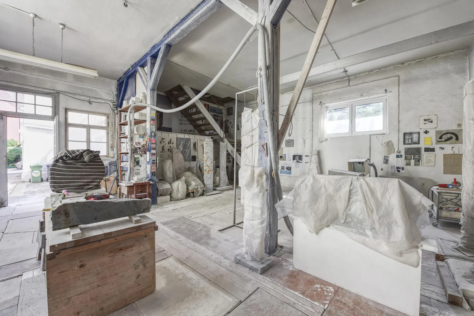 Das komplette Werkstatt-Gebäude ist für 300 EUR monatlich als Atelier vermietet. Hier beträgt die Kündigungsfrist 1 Jahr.