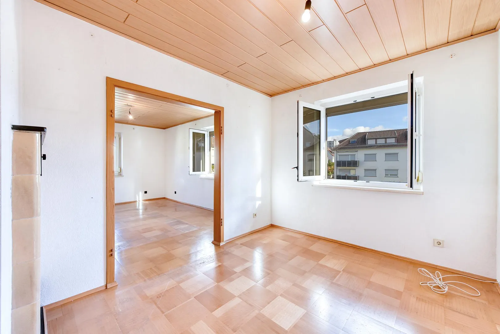Diese teilweise modernisierte 3 1/2-Zimmer-Wohnung mit West-Balkon befindet sich im 2. Obergeschoss.