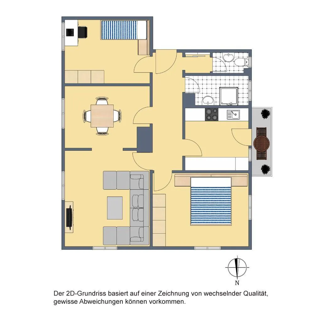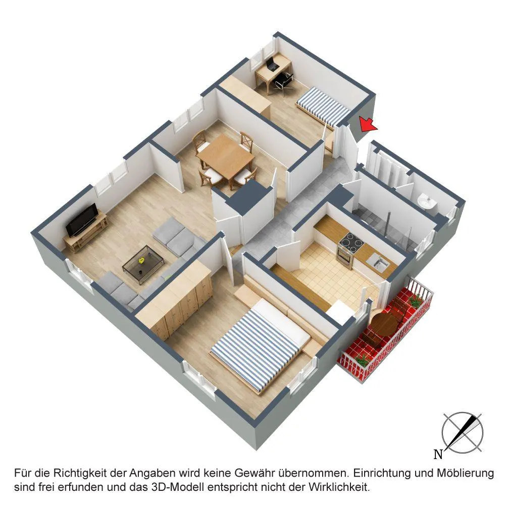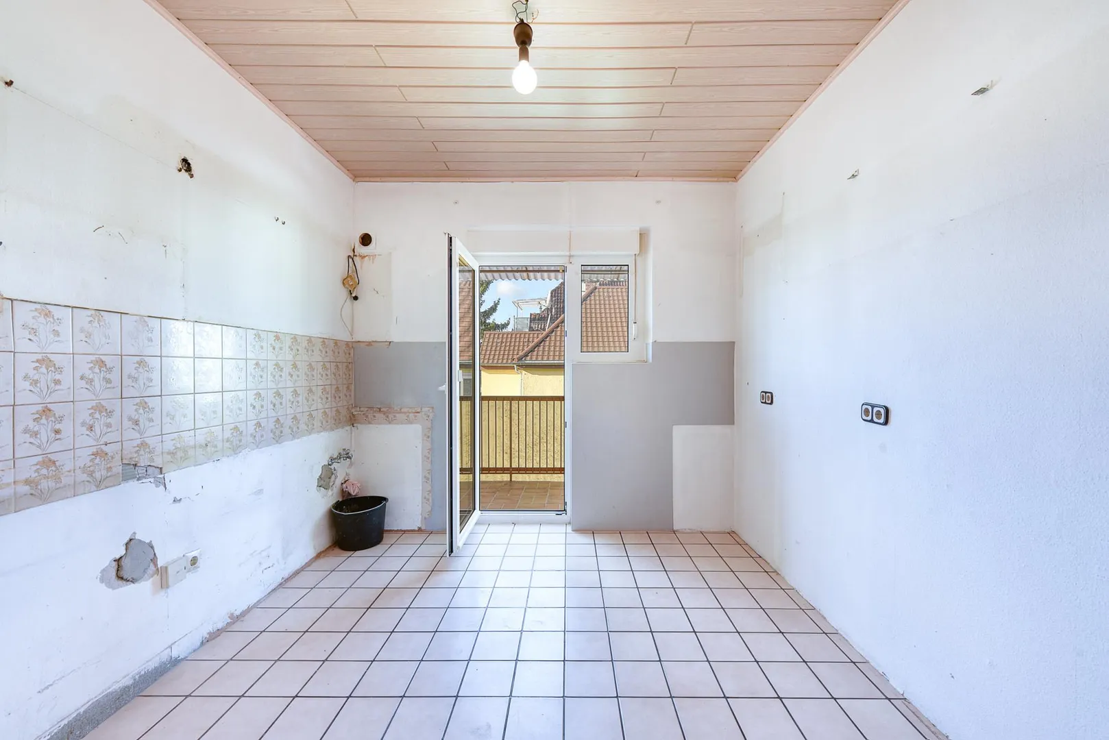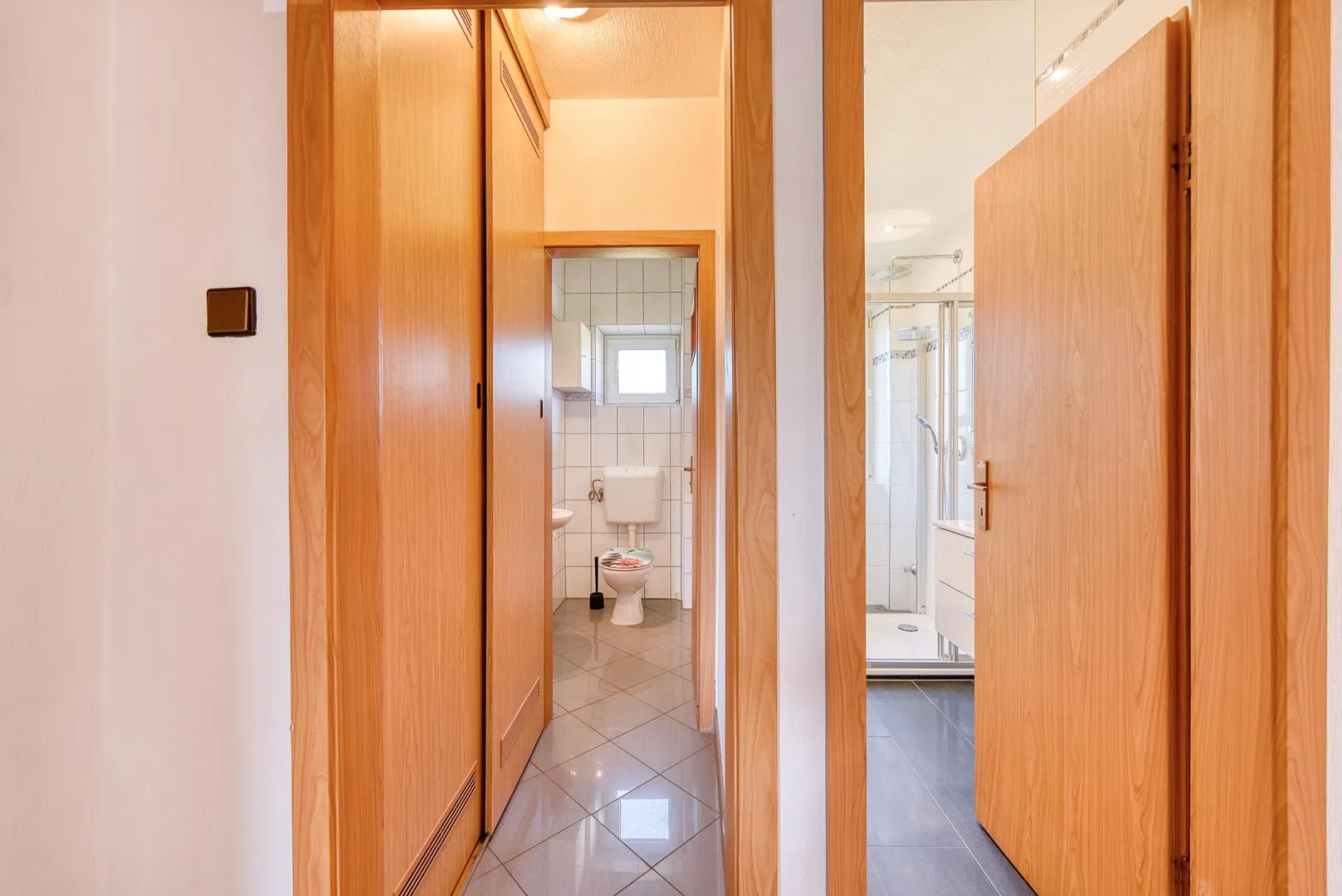 Der Grundriss ist gut: alle Räume sind direkt vom Flur begehbar. Der ca. 3,5 m² große und überdachte West-Balkon ist über die Küche begehbar. Das Badezimmer verfügt über ein Fenster, ebenso wie das separate WC.