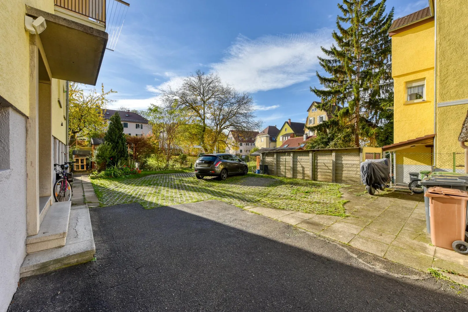 Im Innenhof befindet sich 4 Kfz-Stellplätze, wovon der erste zur Wohnung gehört (Sondernutzungsrecht).