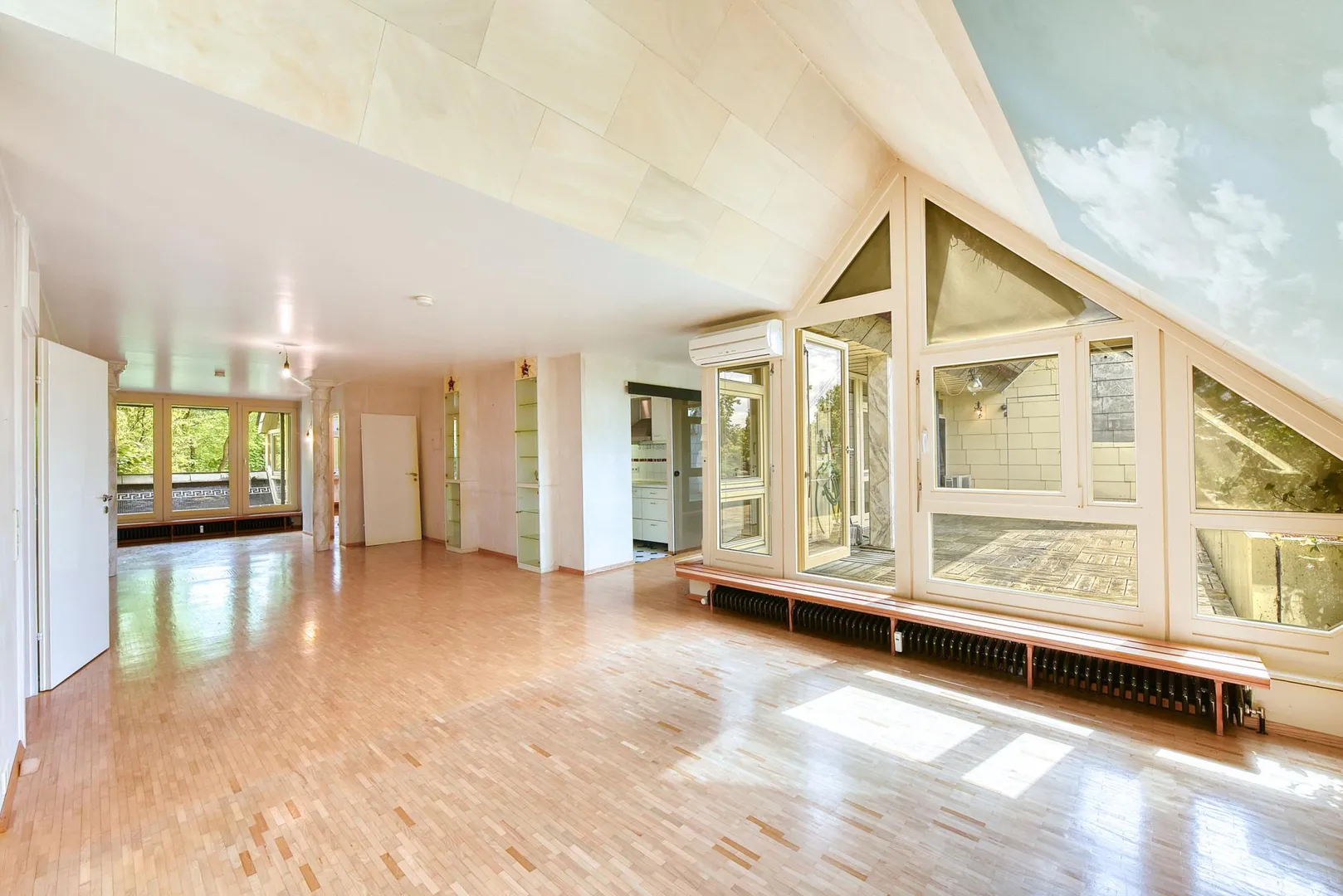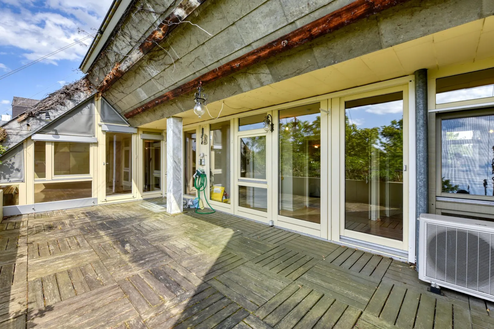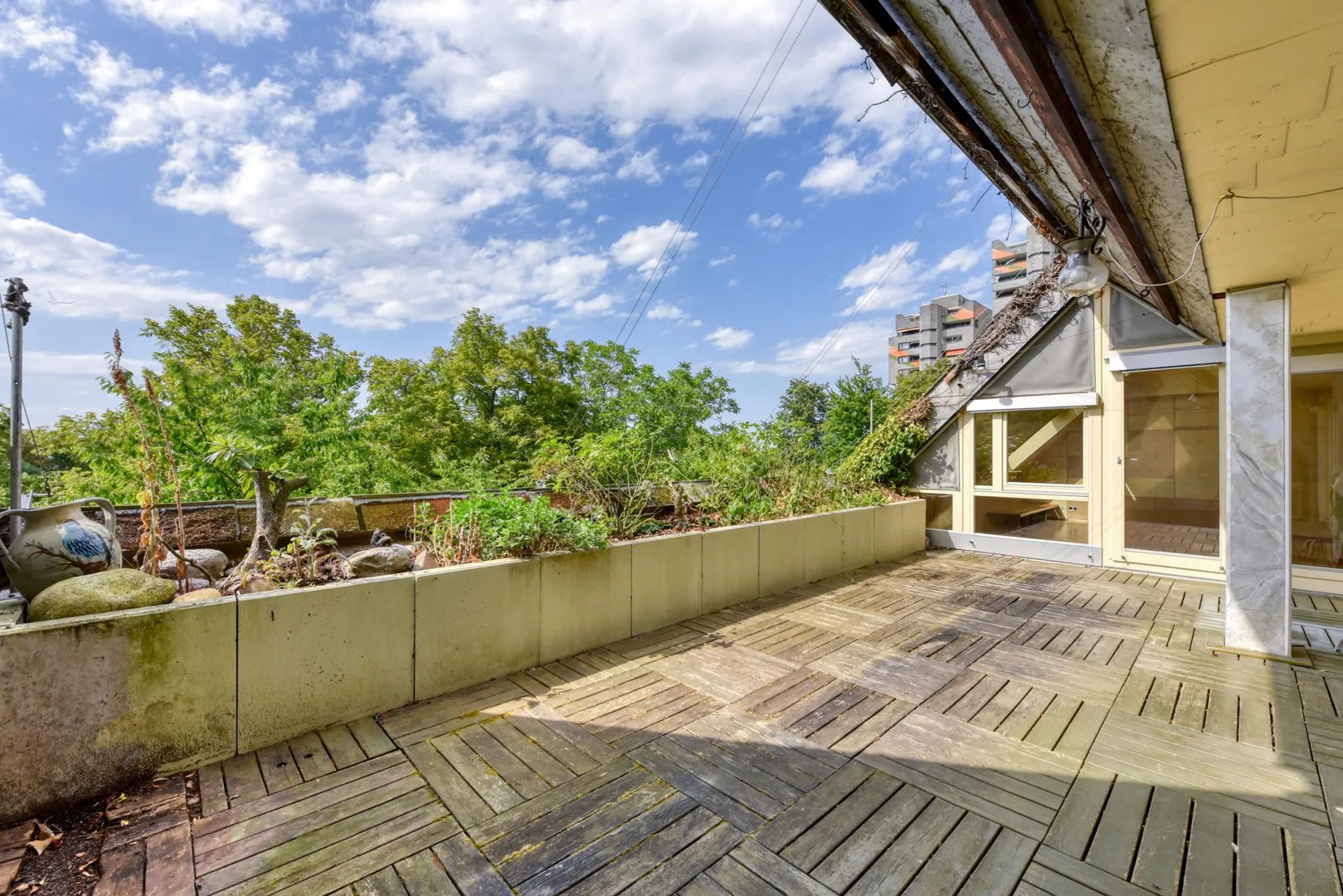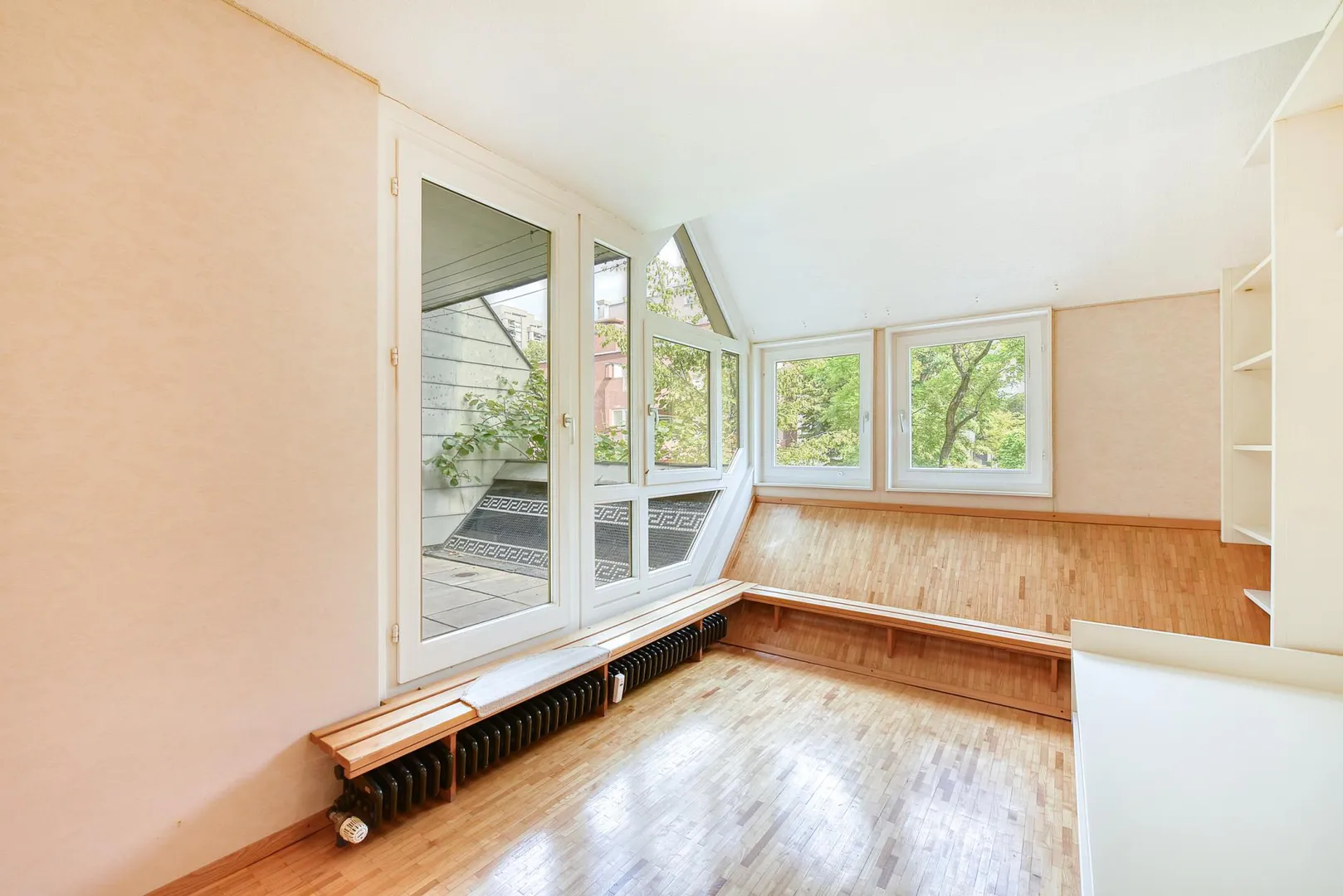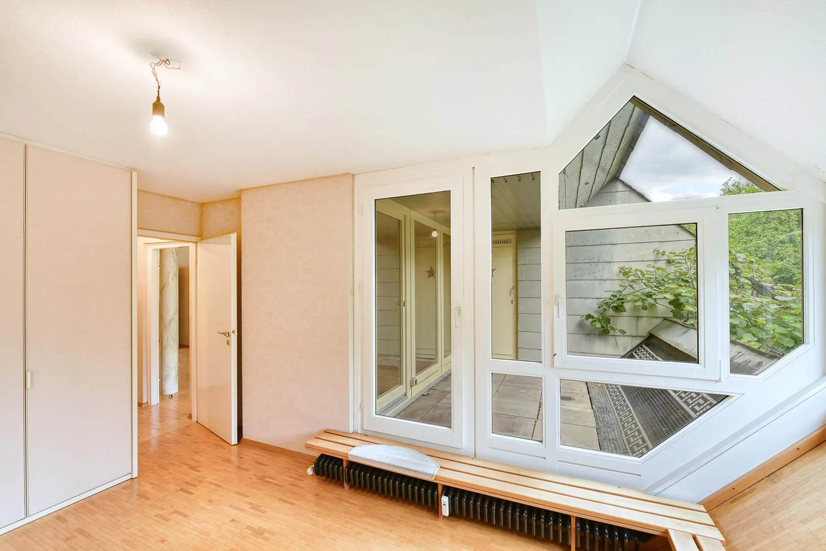 Diese großzügige und extravagante 3 1/2 Zimmer-Terrassen-Wohnung befindet sich im 1. Obergeschoss einer 9-Familien-Doppelhaushälfte.