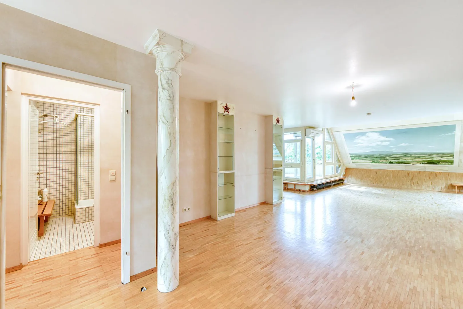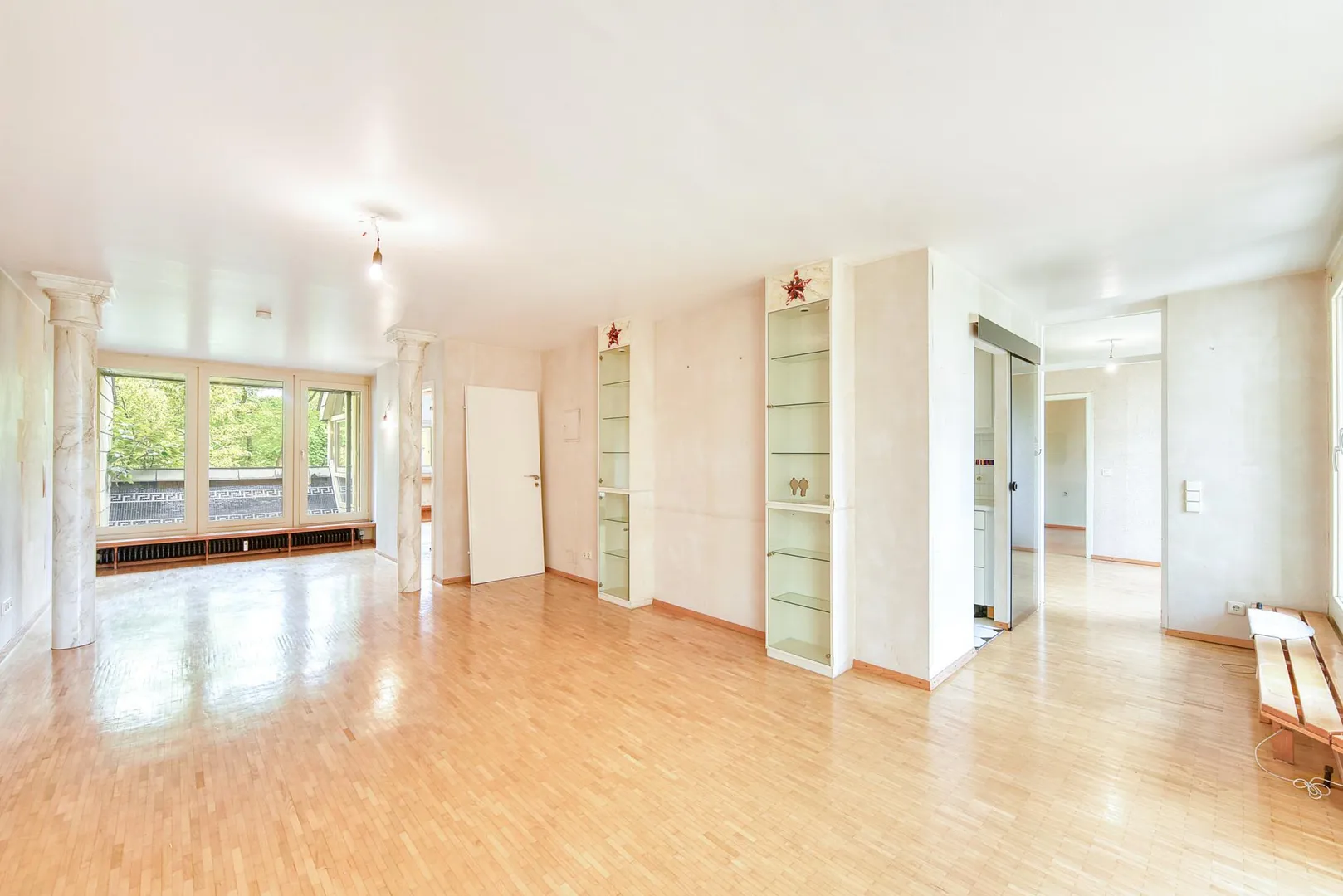 Die Böden in den Bädern sowie in der Küche sind gefliest. Die restlichen Böden sind mit Massiv-Holz-Parkett ausgestattet. Die Raumhöhen betragen ca. 2,38 Meter.