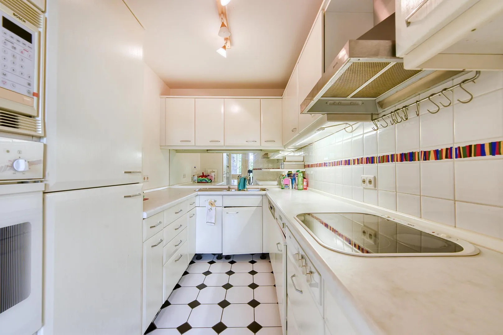 Die Küche ist mit einer Einbauküche mit Waschmaschinen-Anschluss ausgestattet. Es sind diverse Einbaumöbel vorhanden.