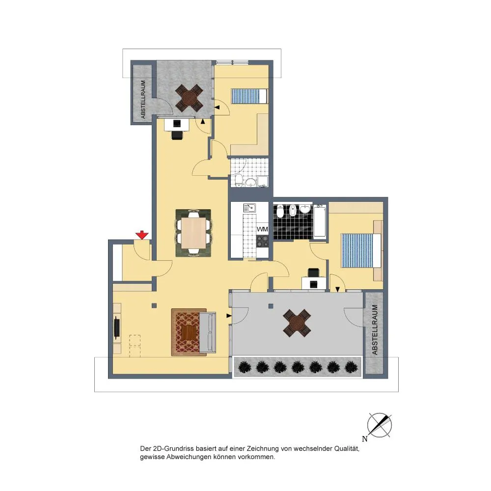 Sowohl die Terrasse als auch der Balkon verfügen über einen Abstellraum.