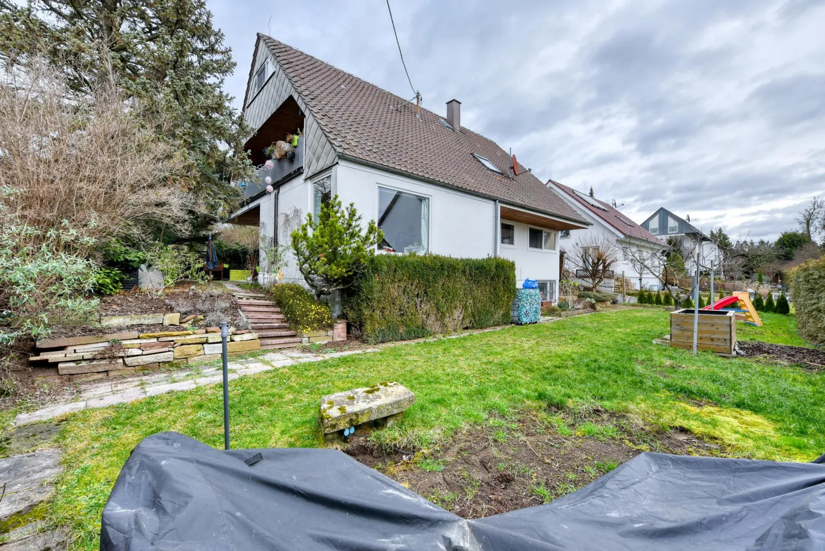 Das Haus befindet sich in ruhiger und sonniger Süd-Hanglage, am Rand vom Neubaugebiet-Korntal-West sowie am Ende einer Sackgasse.
