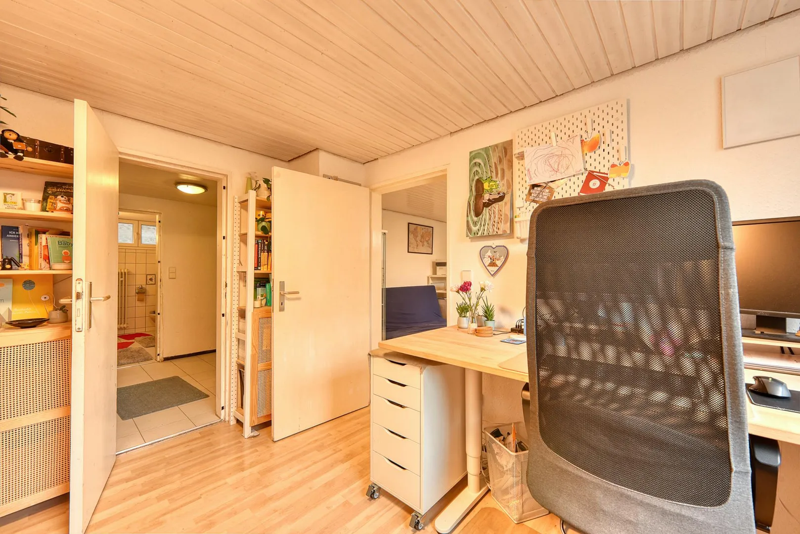 In den Zimmern wurde 2021 ein neuer Laminatboden verlegt. Die Böden in der Diele, in der Küche, im Badezimmer sowie im WC sind gefliest.