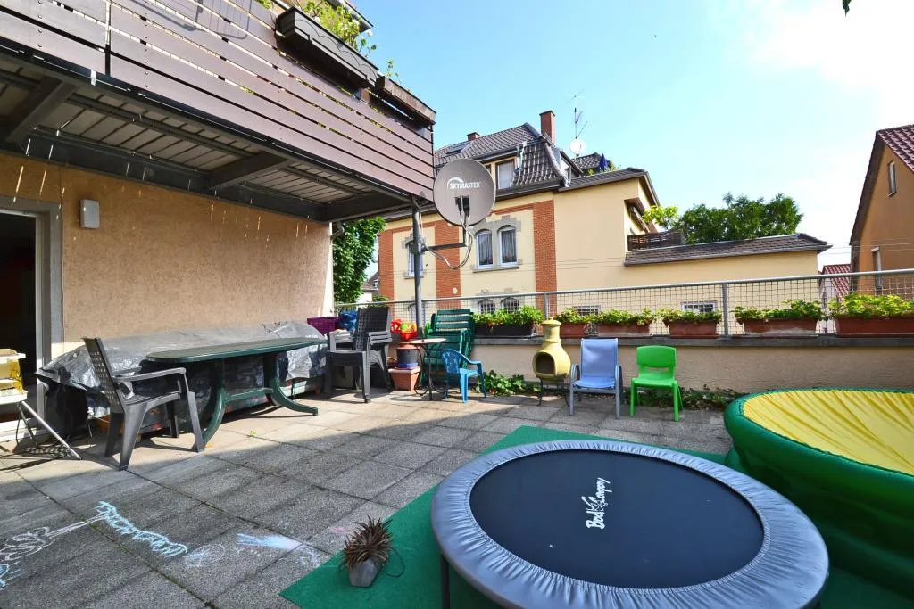 Diese modernisierte und renovierte 3-Zimmer-Etagen-Wohnung mit großer Terrasse befindet sich im 1. Obergeschoss.