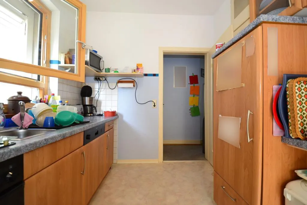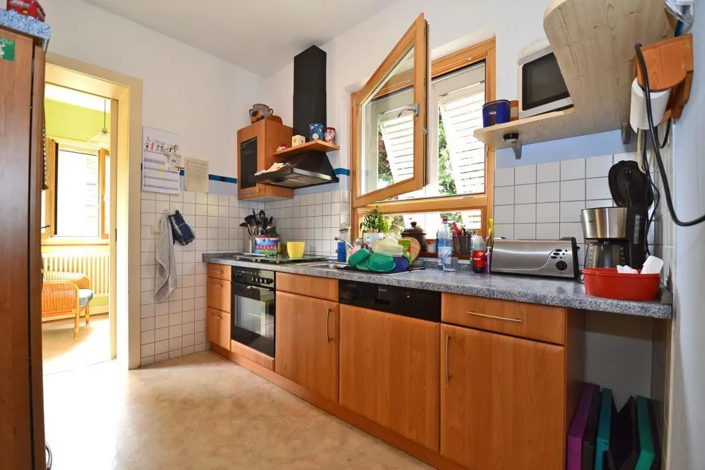Der Küchenboden ist mit PVC-Boden ausgestattet. Die Einbauküche kann von den aktuellen Mietern für 700 EUR (VB) übernommen werden.