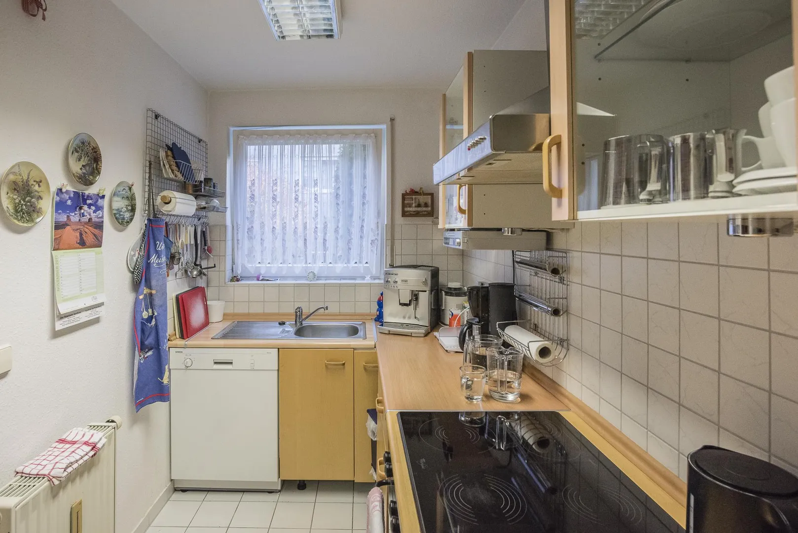 Diese solide vermietete 2-Zimmer-Wohnung mit Terrasse und Garten befindet sich im Hochparterre (Erdgeschoss) einer 6-Familien-Doppelhaushälfte.