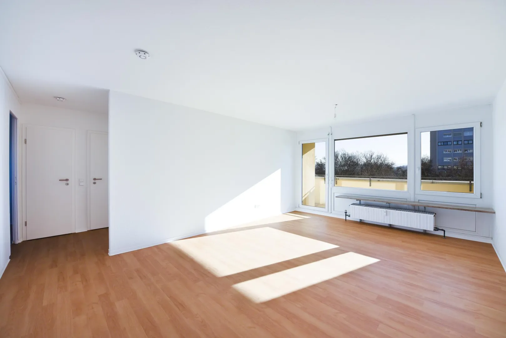 Das Wohnzimmer mit Zugang zum Balkon, der Balkon sowie das Kinder-/Arbeitszimmer sind nach Süden ausgerichtet.