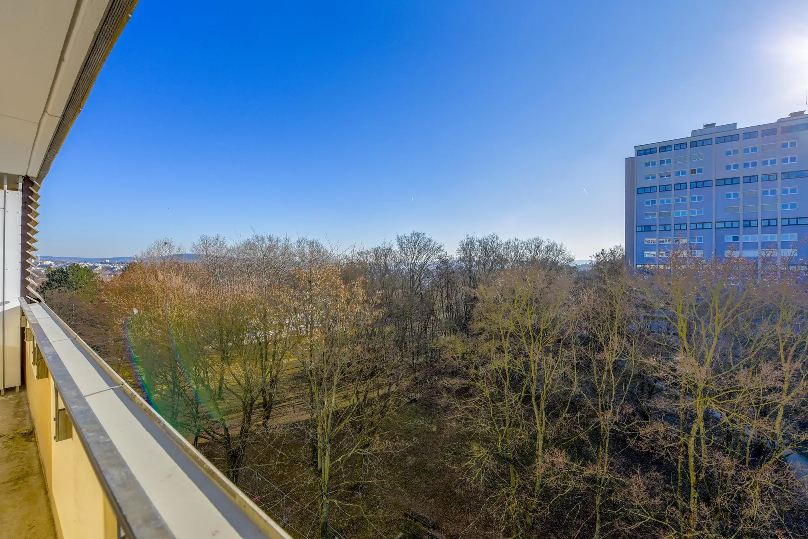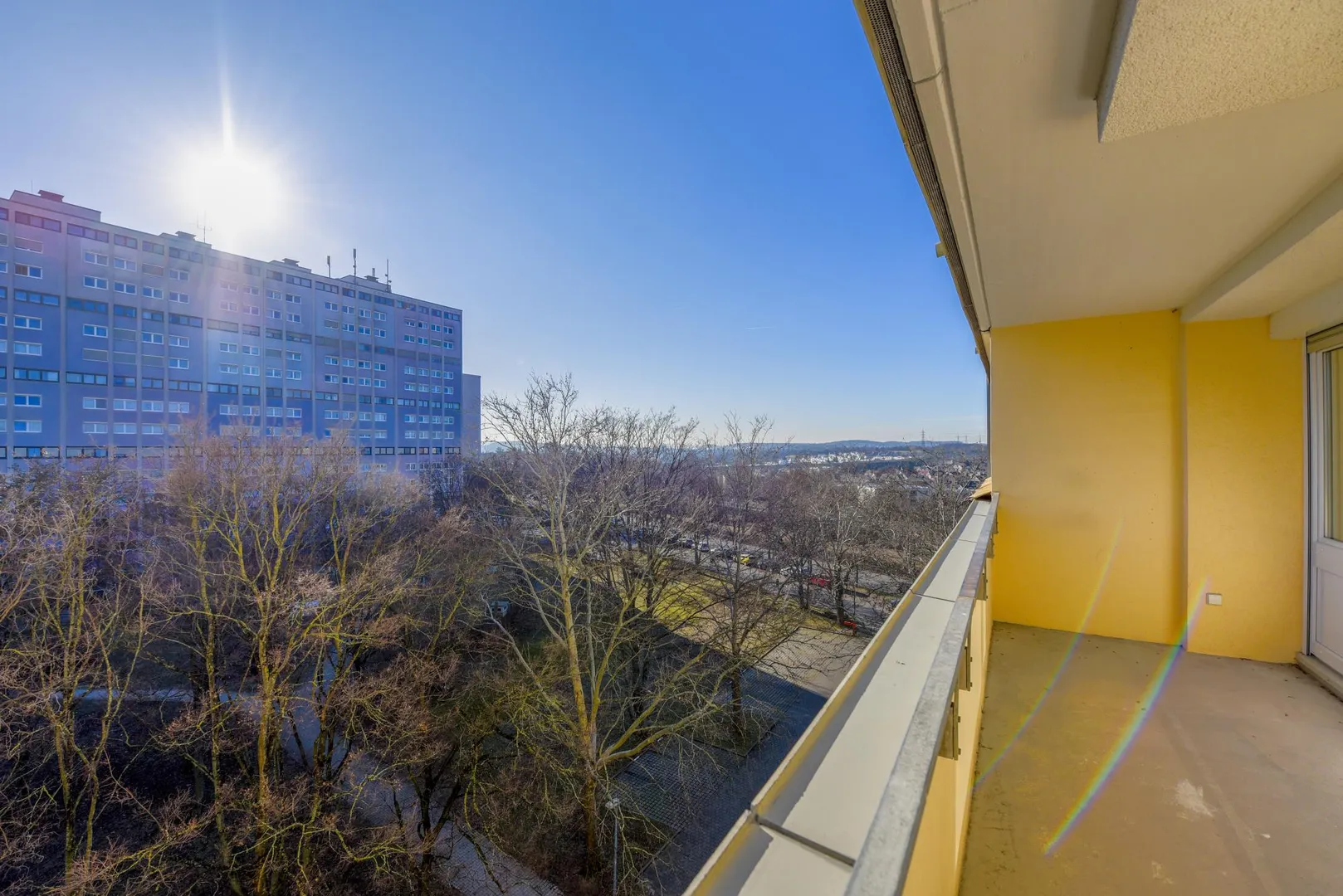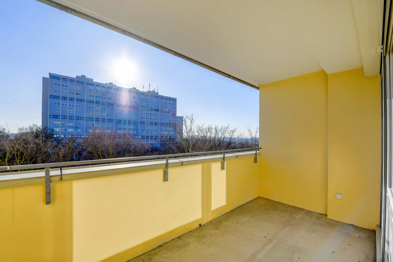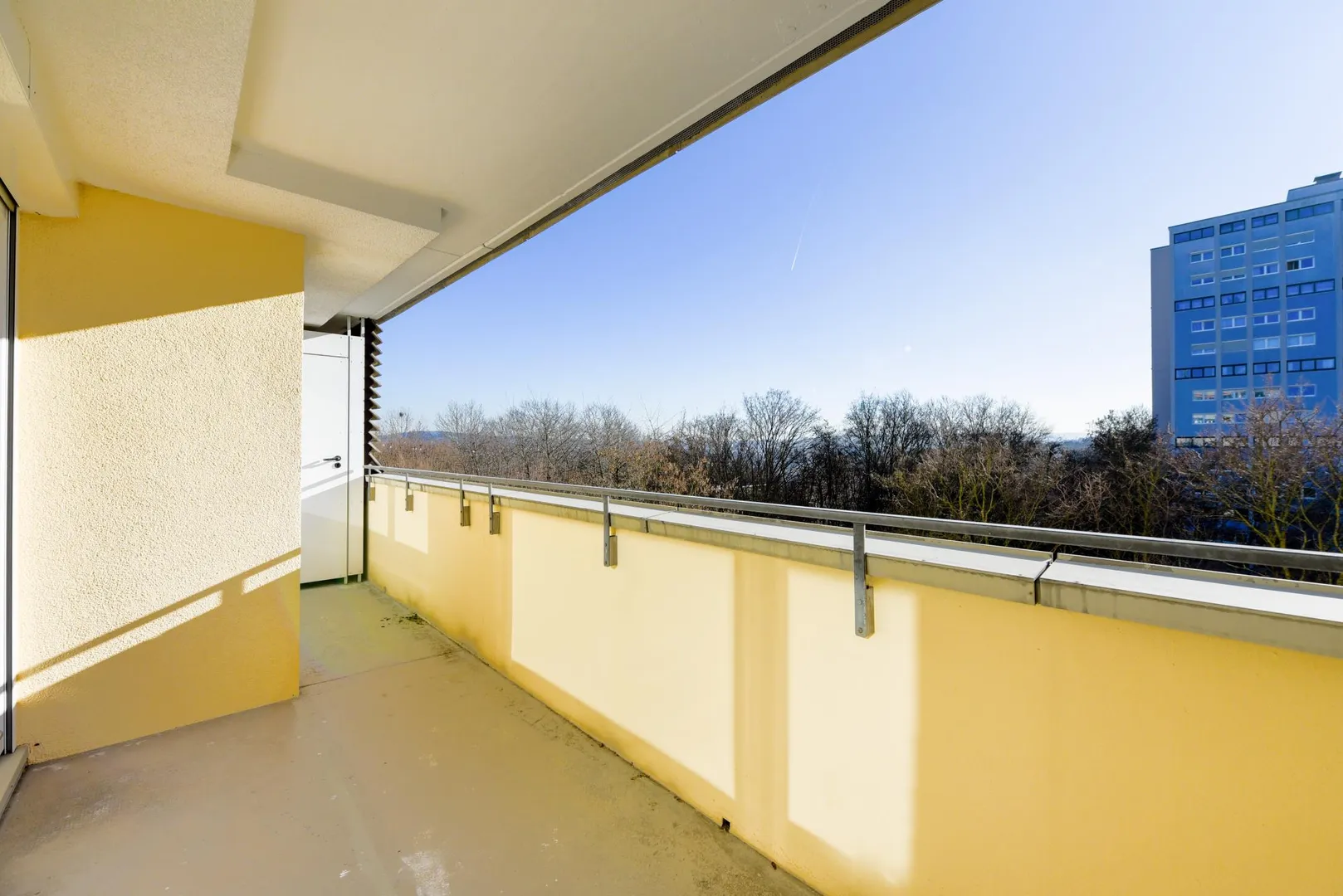 Der knapp 10 m² große Süd-Balkon ist überdacht und verfügt über einen Abstellraum.