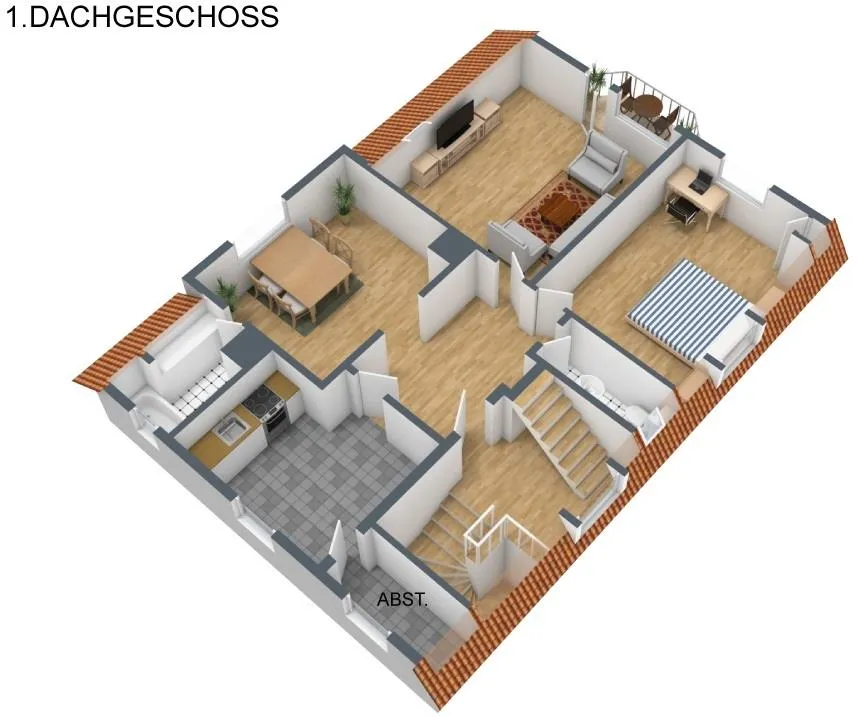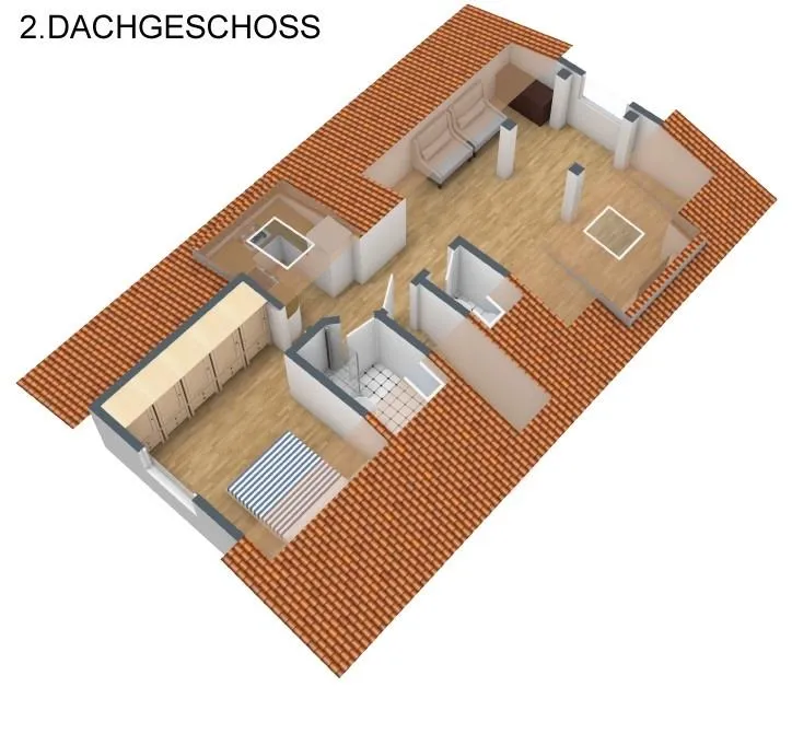 Das Dachgeschoss wurde vermutlich ca. 2003 zur Wohnung ausgebaut. Ein Bauantrag für den DG-Ausbau wurde nicht gestellt.