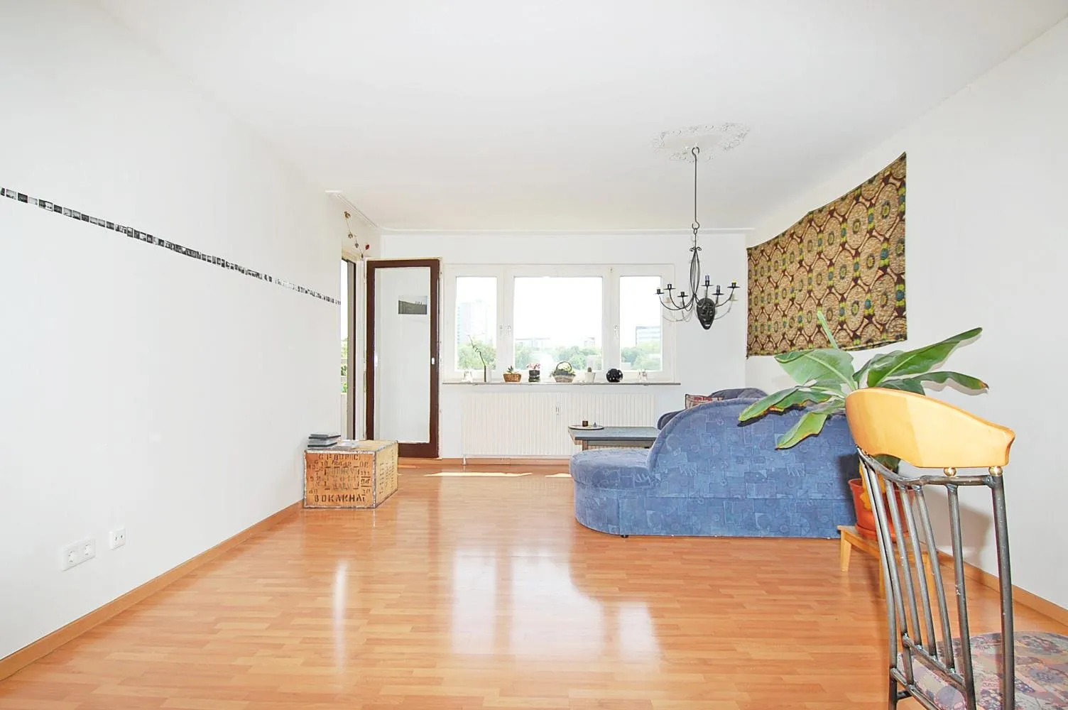 Die Fenster im Wohnzimmer sowie die Balkontür wurden 2012 gegen neue Kunststofffenster gewechselt.
