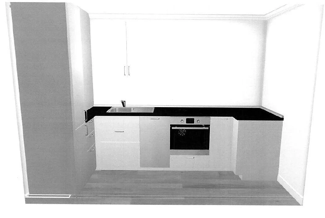 Die neue Einbauküche ist ausgestattet mit einer Spülmaschine, einem Induktions-Herd, einem Backofen sowie Unter- und Oberschränken. Kühlschrank/Gefrierschrank und Waschmaschine sind nicht vorhanden. Die Wäsche wird in der gemeinschaftlichen Waschmaschine gewaschen.
