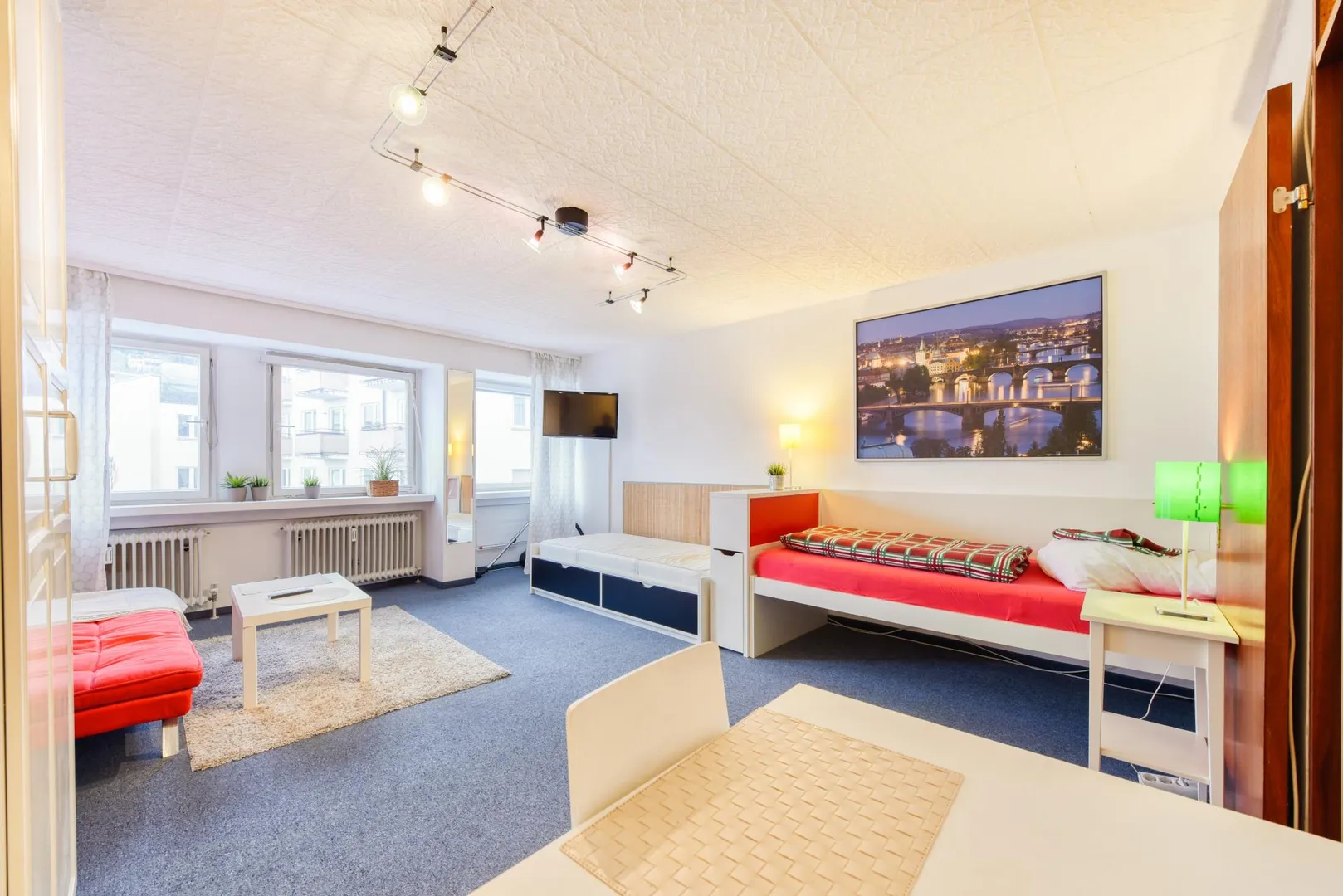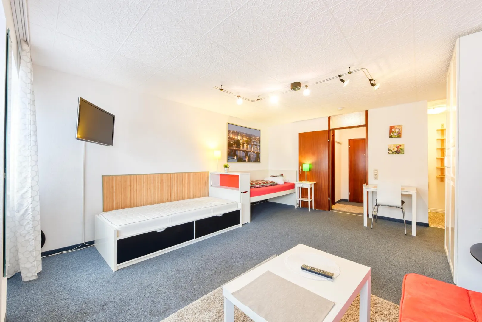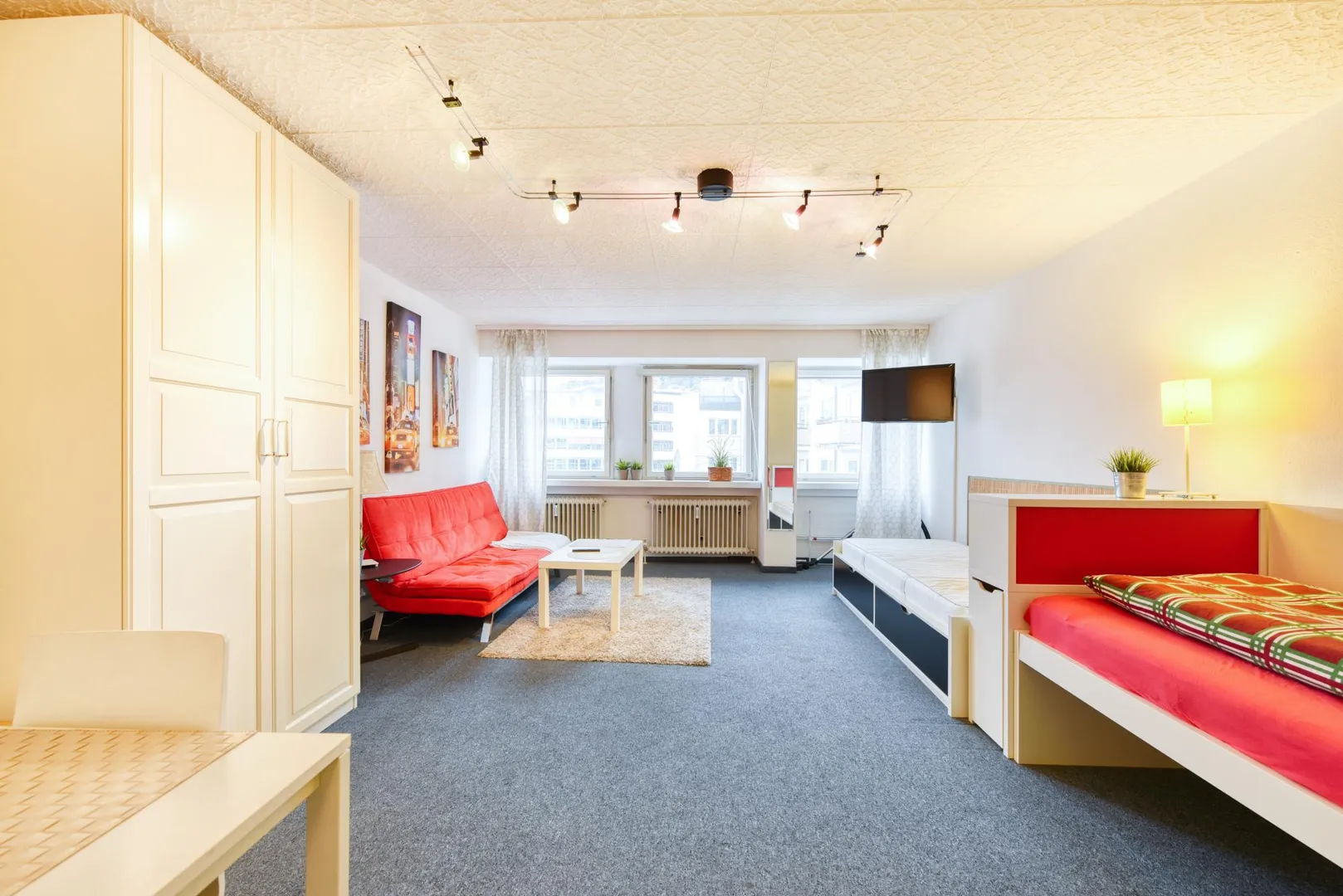 Diese gemütliche und vollständig möblierte 1-Zimmer-Wohnung für ca. 2 Jahre Mietdauer befindet sich im 1. Obergeschoss eines Wohn- und Geschäftshauses mit 33 Wohneinheiten.