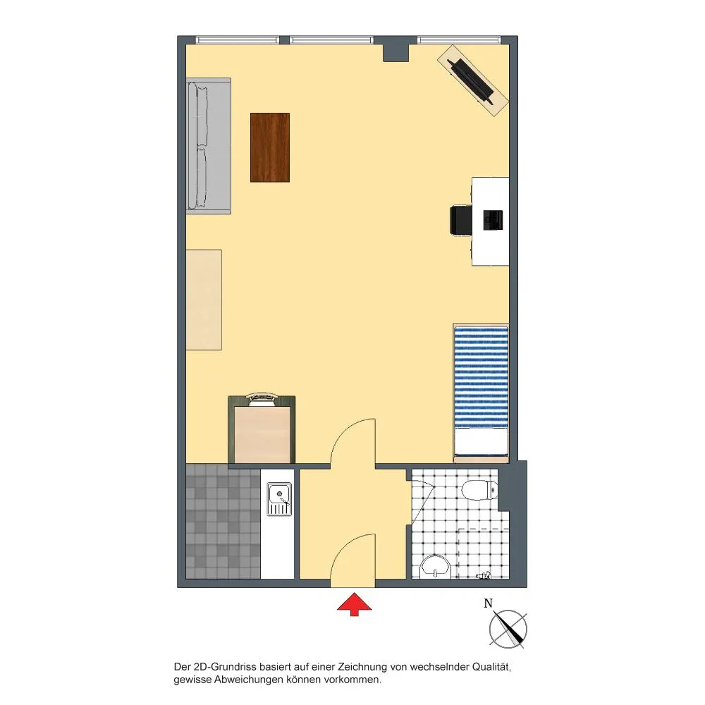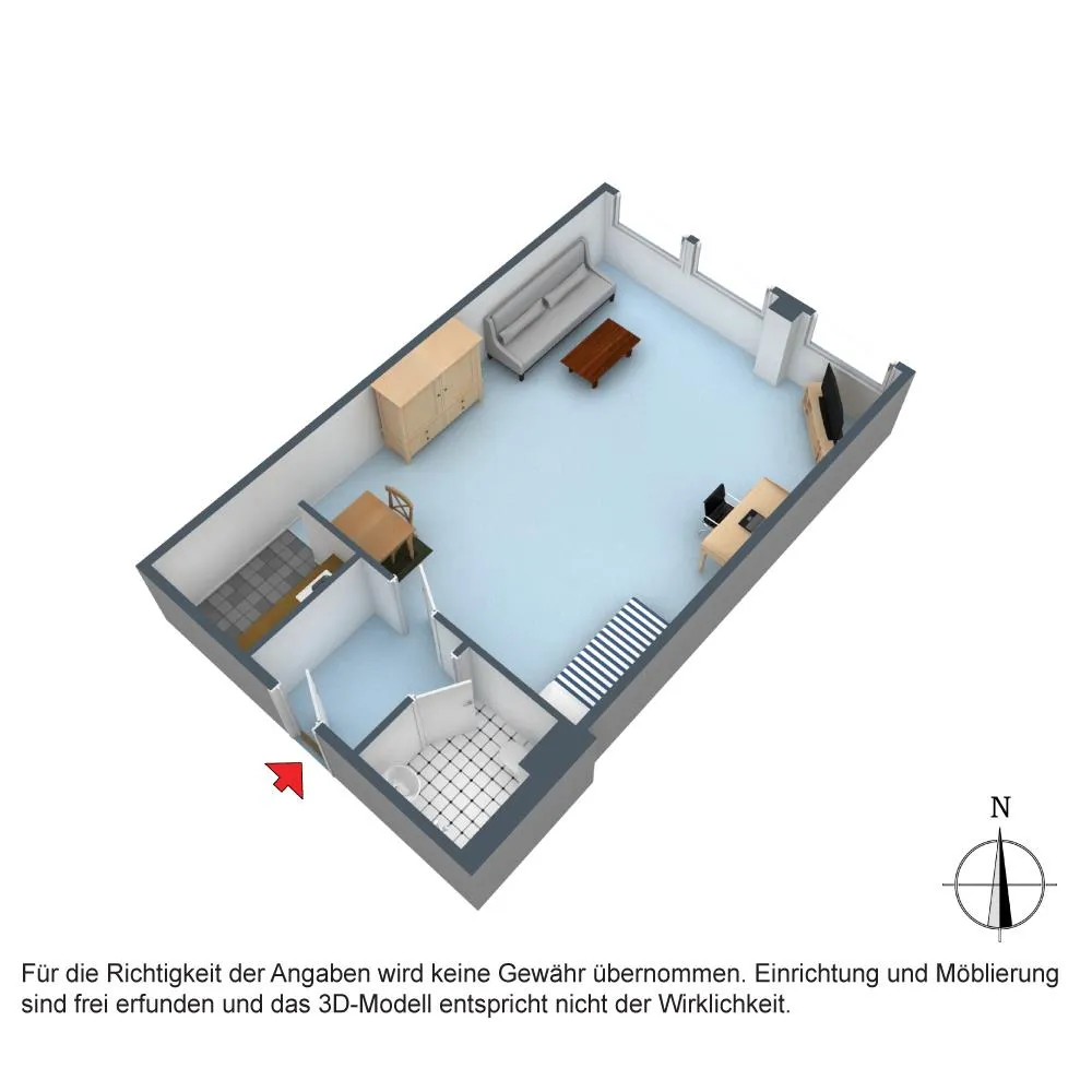Diese gemütliche und vollständig möblierte 1-Zimmer-Wohnung für ca. 2 Jahre Mietdauer befindet sich im 1. Obergeschoss.