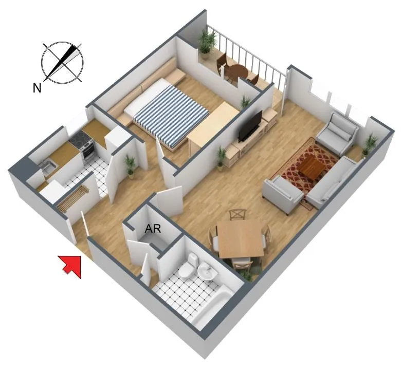 Der Grundriss ist gut. Alle Räume sind vom Flur aus begehbar. In der Wohnung befindet sich ein Abstellraum.
