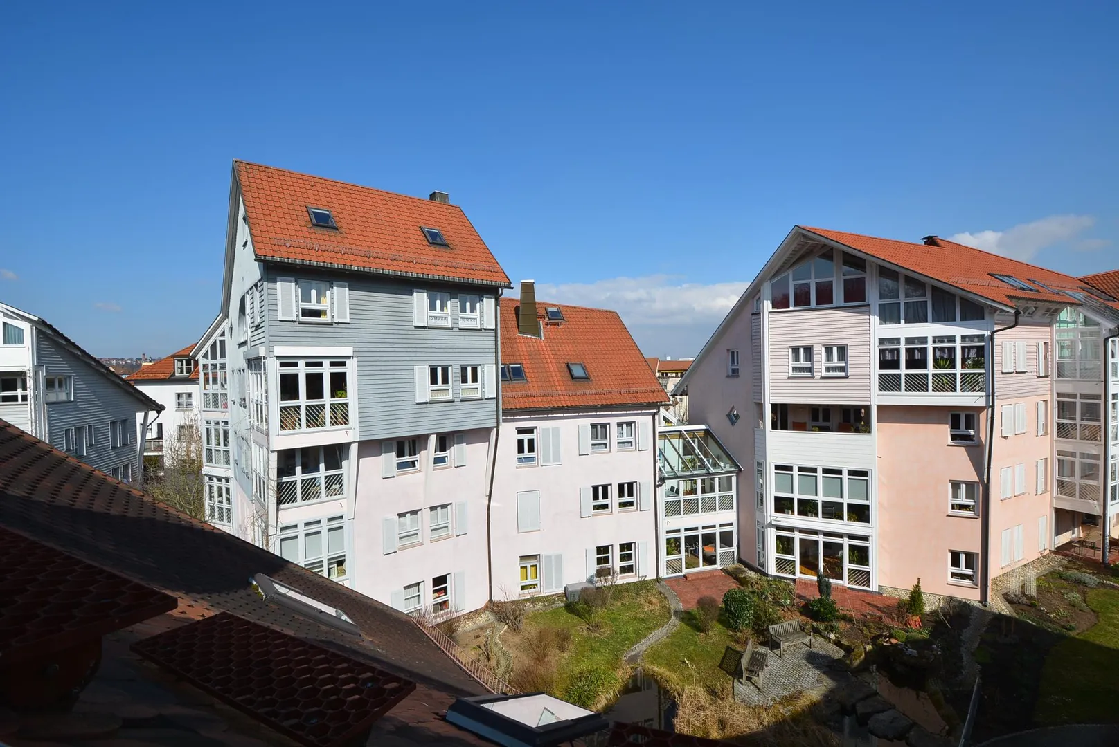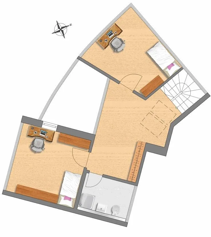 Diese vermietete und außergewöhnliche 4 ½ Zimmer-Dachgeschoss-Maisonette-Wohnung mit Haus-im-Haus-Charakter (separater Eingang) befindet sich im 2. Obergeschoss.