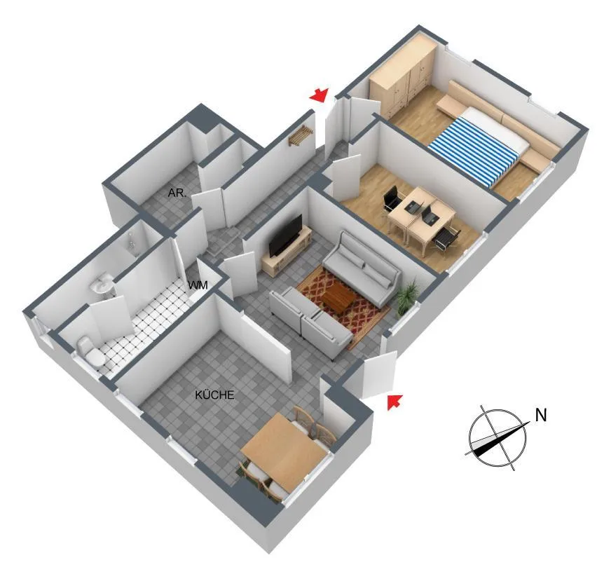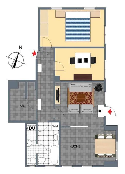Die Wohnung ist über das Treppenhaus oder über einen separaten Eingang begehbar.