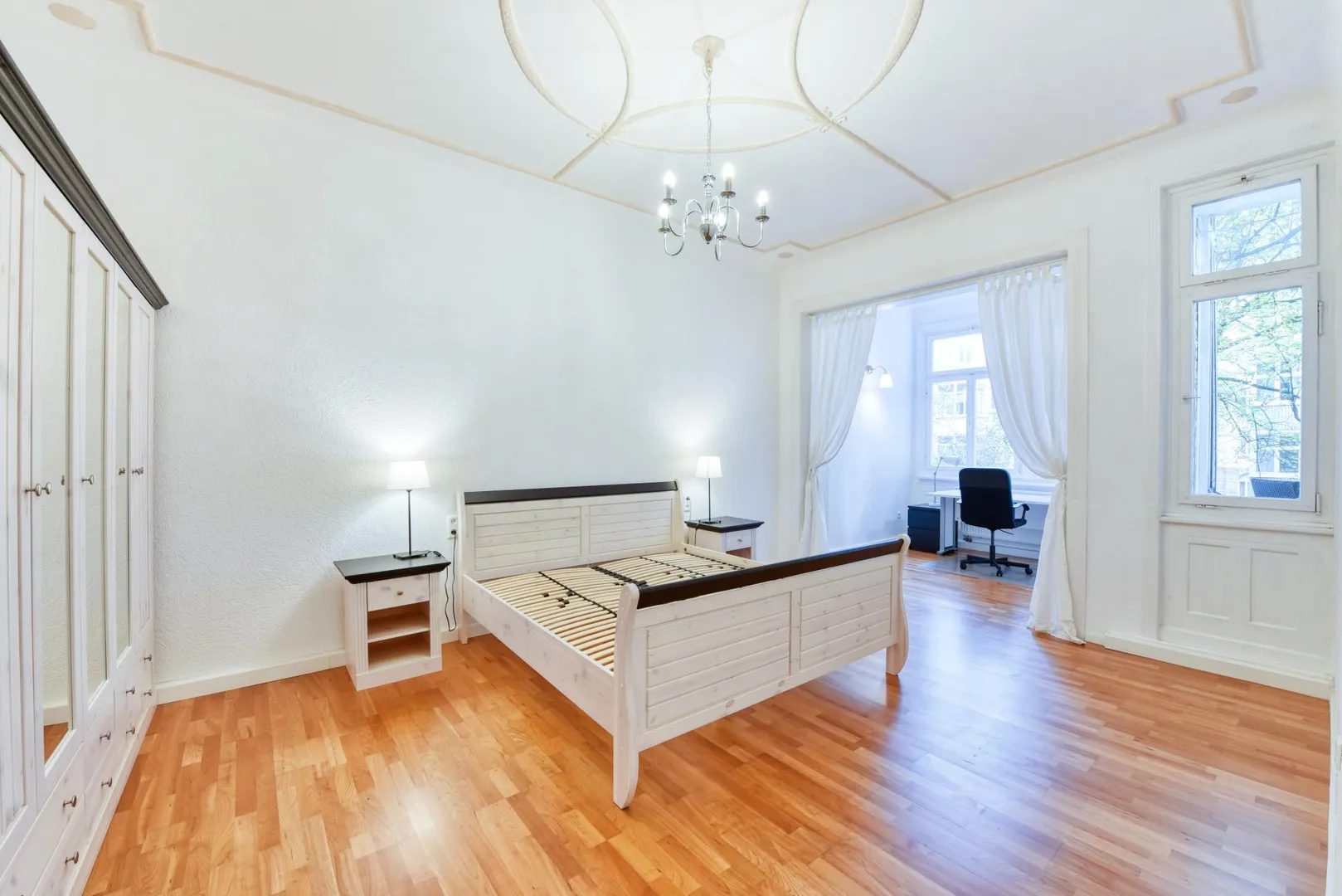 Zahlreiche ursprüngliche Elemente wie Türrahmen, Türen und Stuckdecken sind erhalten geblieben und hochwertig aufgearbeitet worden.