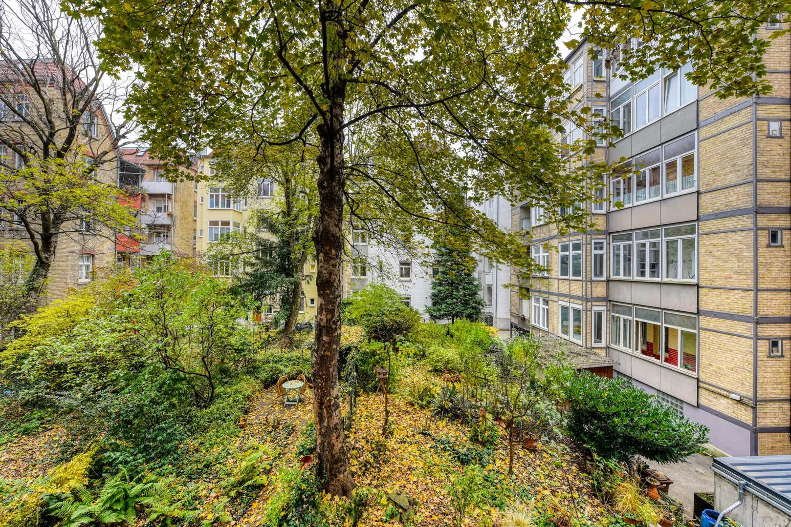 Das Wohnzimmer sowie das Esszimmer sind zur West-Seite (Straßenseite) ausgerichtet. Das Schlafzimmer mit Arbeitsecke, das Badezimmer, die Küche sowie der Balkon sind zum grünen Innenhof (Ost-Seite) ausgerichtet.