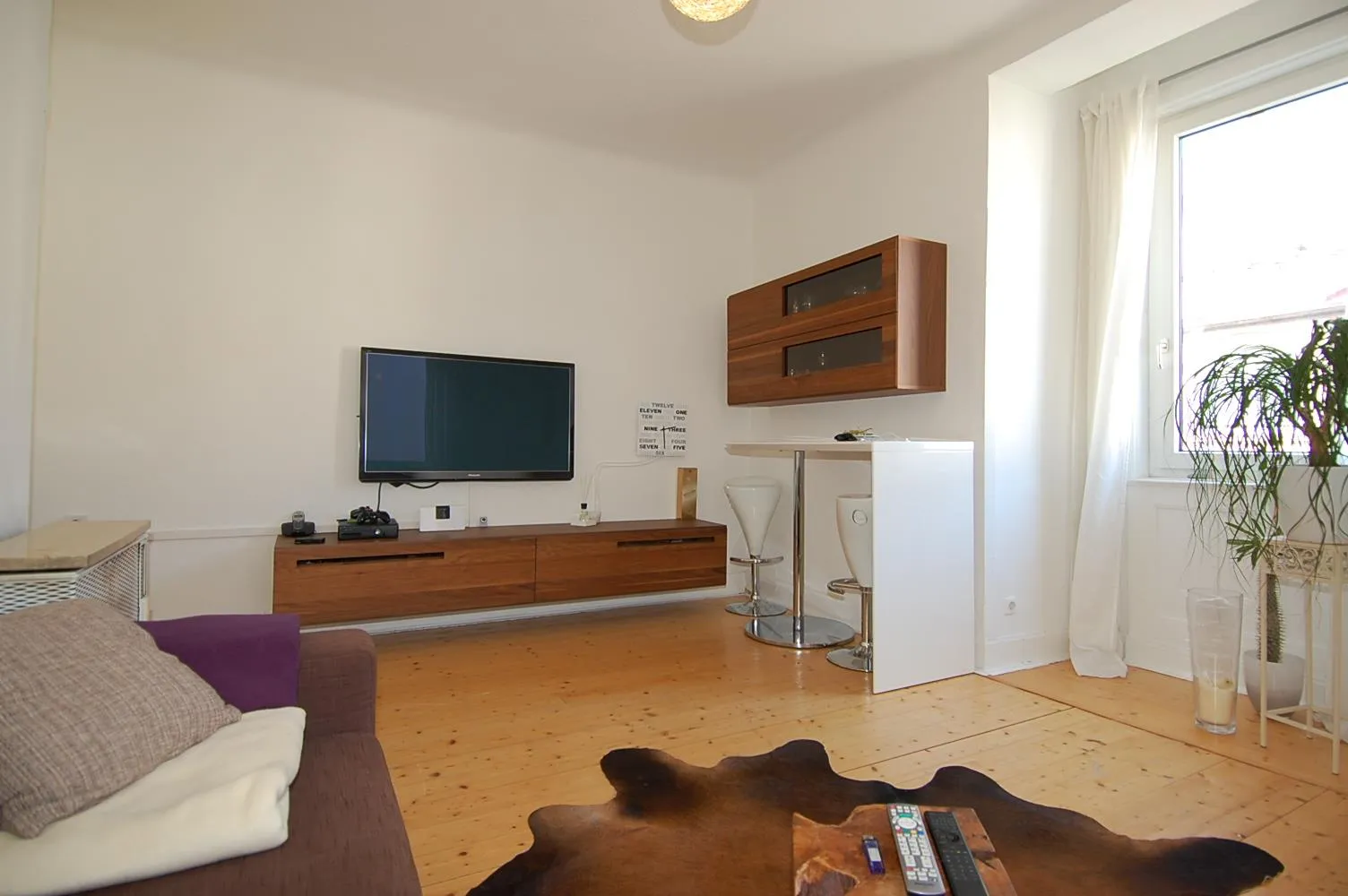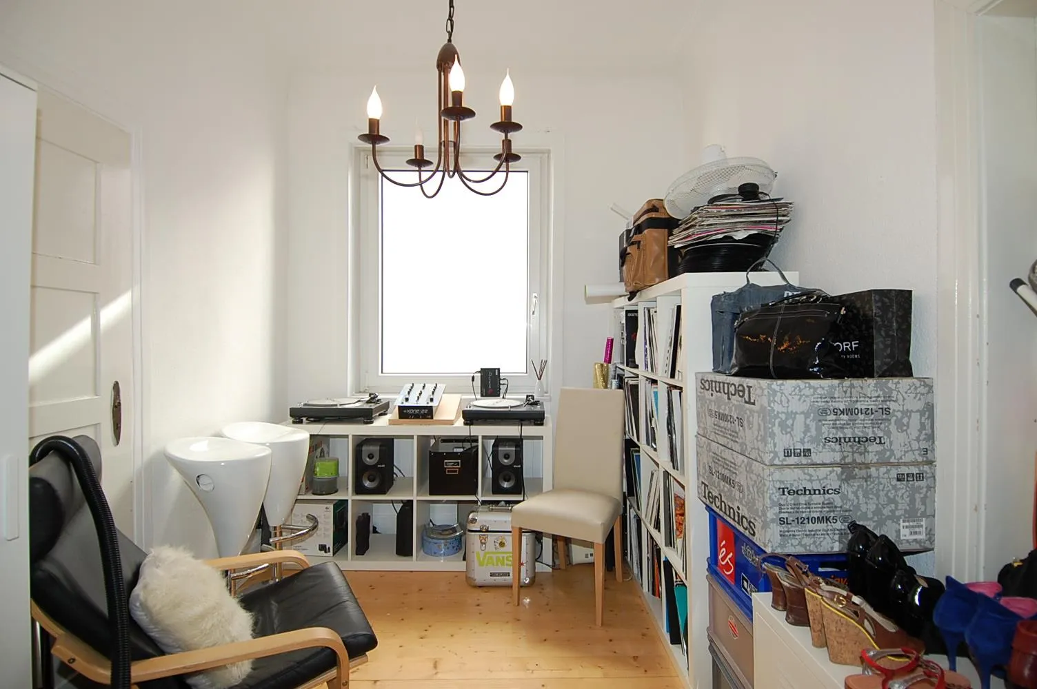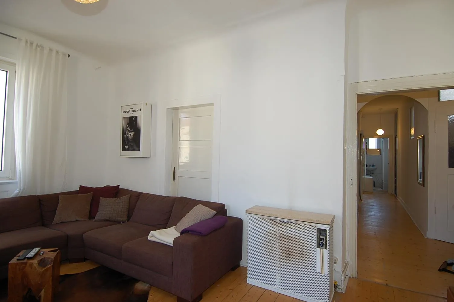 Die Wohnung ist mit Holzdielenboden und Raufasertapeten ausgestattet.