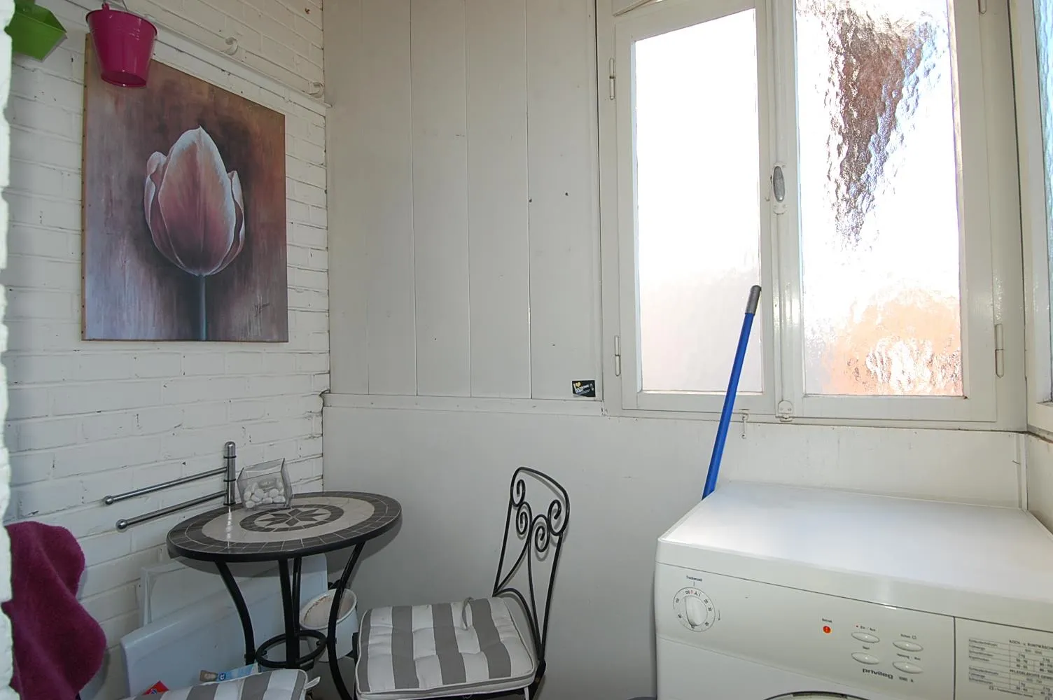 Von der Küche gelangen Sie auf eine kleine Veranda mit Platz für eine Sitzmöglichkeit und aktuell auch für einen Wäschetrockner.
