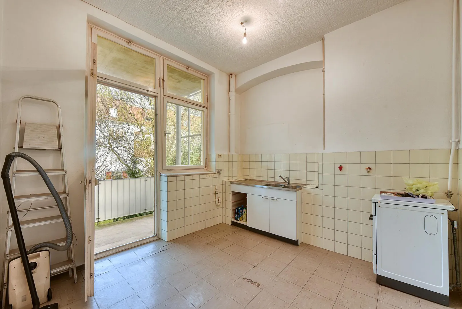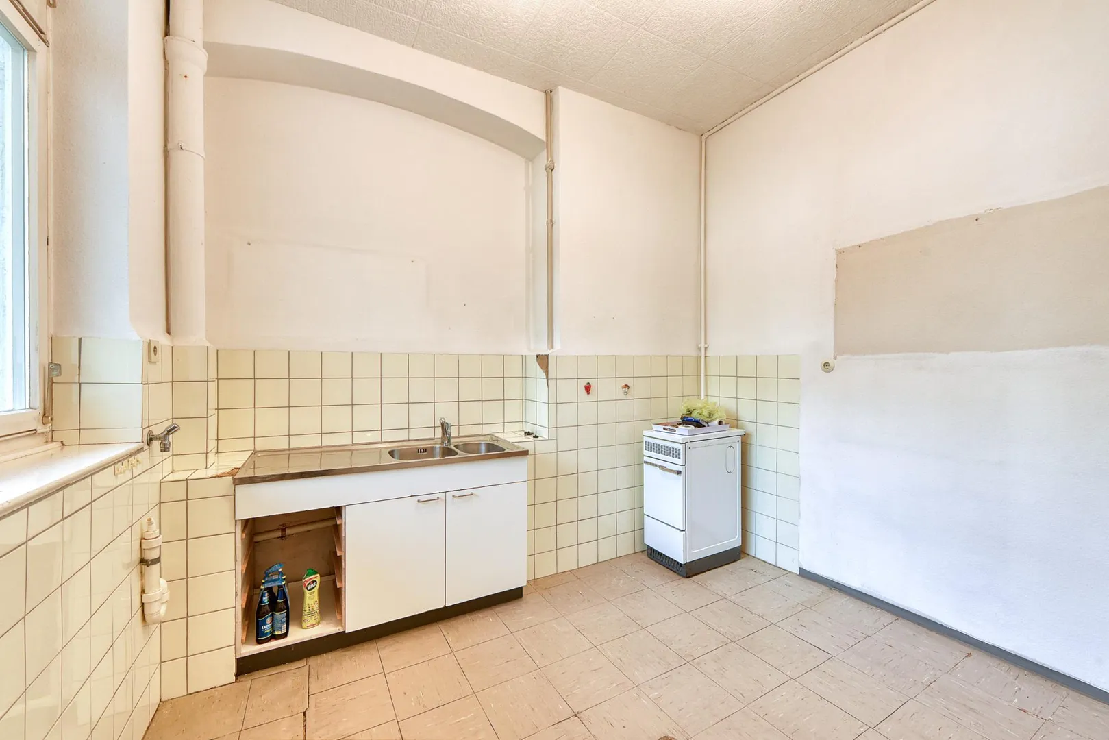 Diese sanierungsbedürftige 2-Zimmer-Altbau-Wohnung befindet sich im 1. Obergeschoss.