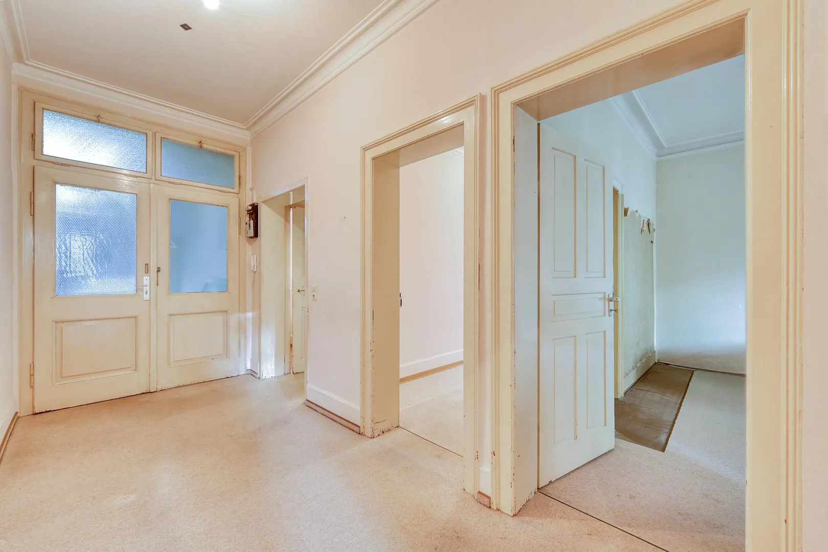 Diese sanierungsbedürftige 2-Zimmer-Altbau-Wohnung befindet sich im 1. Obergeschoss eines 10-Parteienhauses.