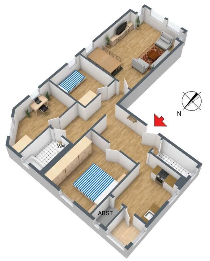 Bitte beachten Sie, dass die Wohnung über keinen Balkon sondern lediglich über eine Küchen-Veranda verfügt.