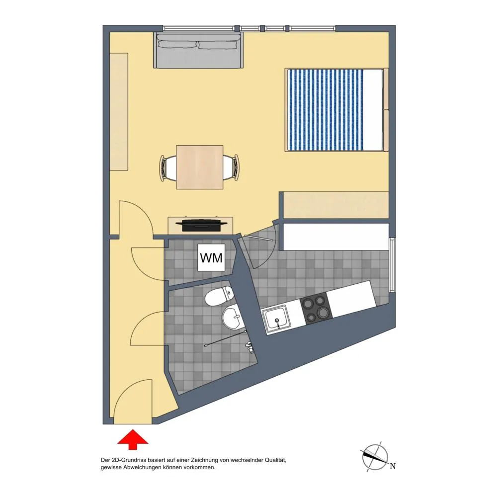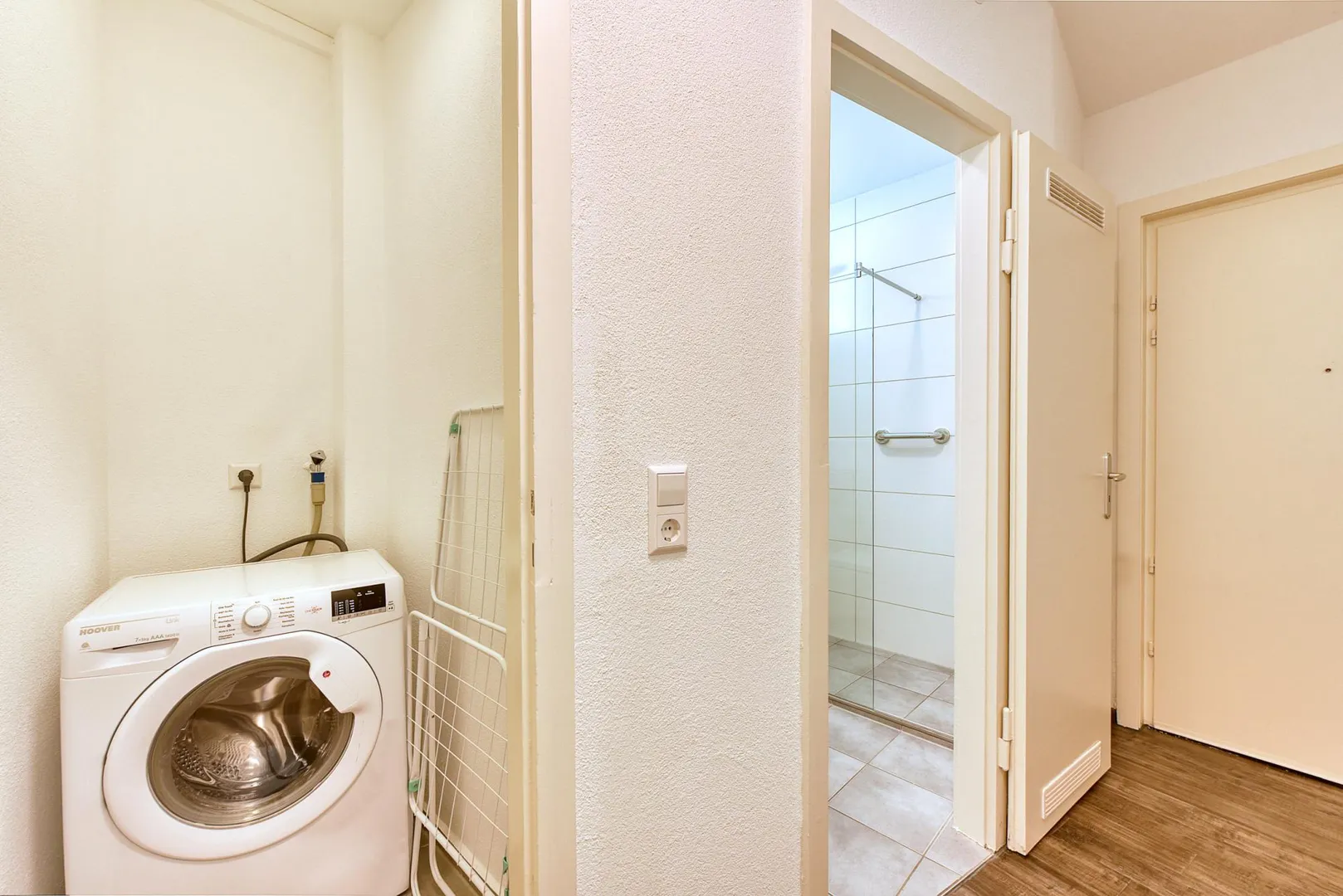 In der Wohnung befindet sich ein Abstellraum mit Waschmaschinen-Anschluss. Die Küche ist über das Zimmer begehbar. Das Badezimmer mit WC ist innenliegend.