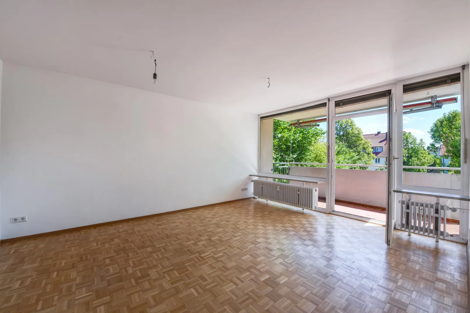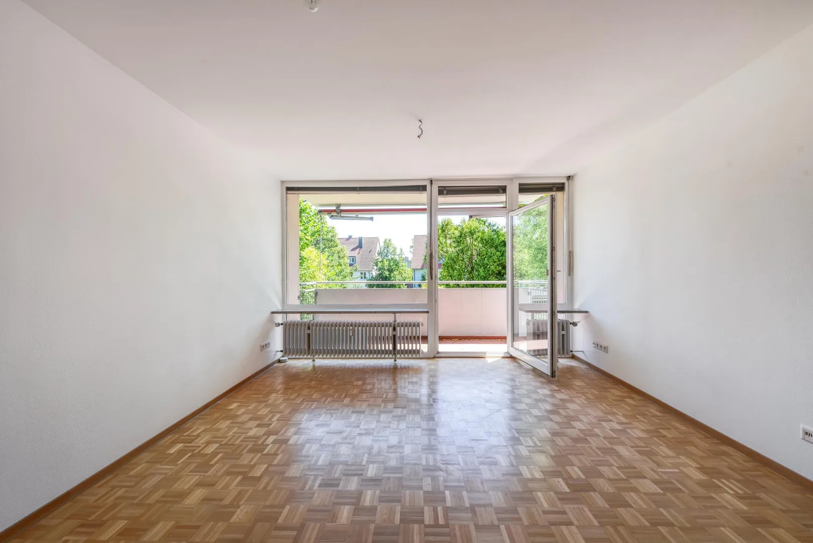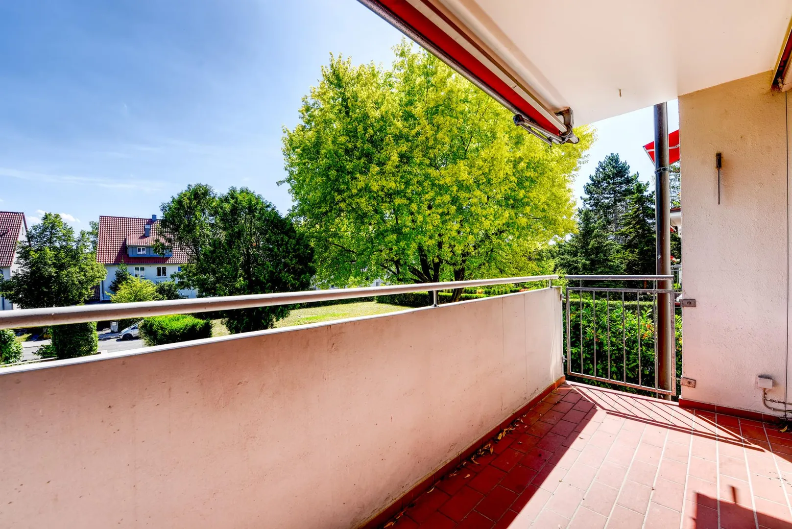 Der Grundriss ist gut. Alle Räume sind direkt vom Flur begehbar. Der Wohnbereich ist zum Flur offen. Das Badezimmer verfügt über ein Fenster. Das WC ist separat. Der ca. 6 m² große und überdachte SSO-Balkon mit Markise ist über den Wohnbereich begehbar.