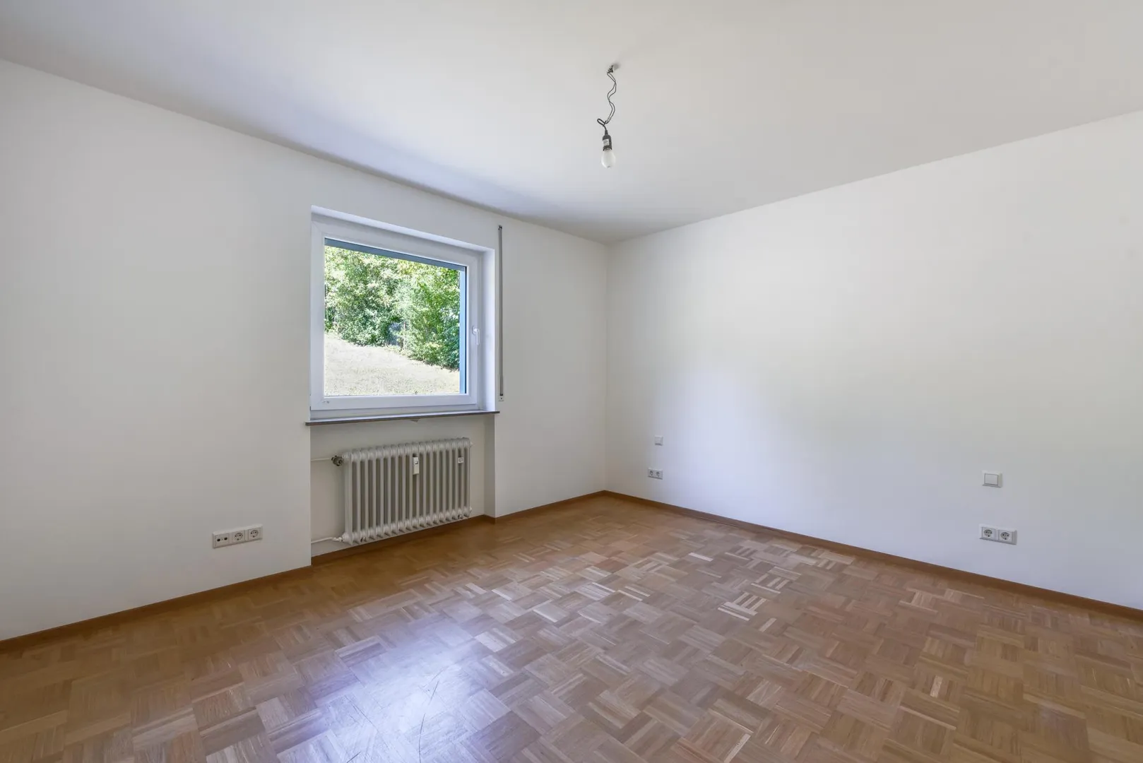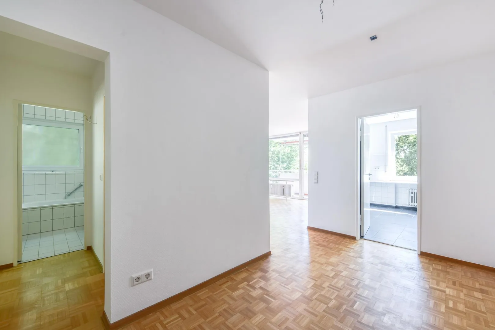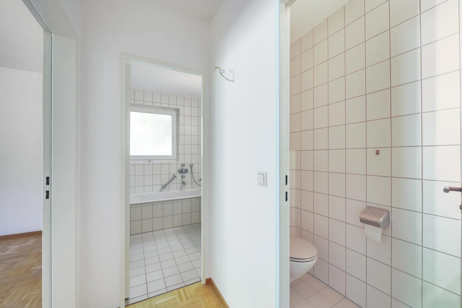 Im Flur sowie in allen Zimmern sind Massivholz-Parkettböden ausgelegt. Die Böden in der Küche, im Badezimmer sowie im WC sind gefliest.