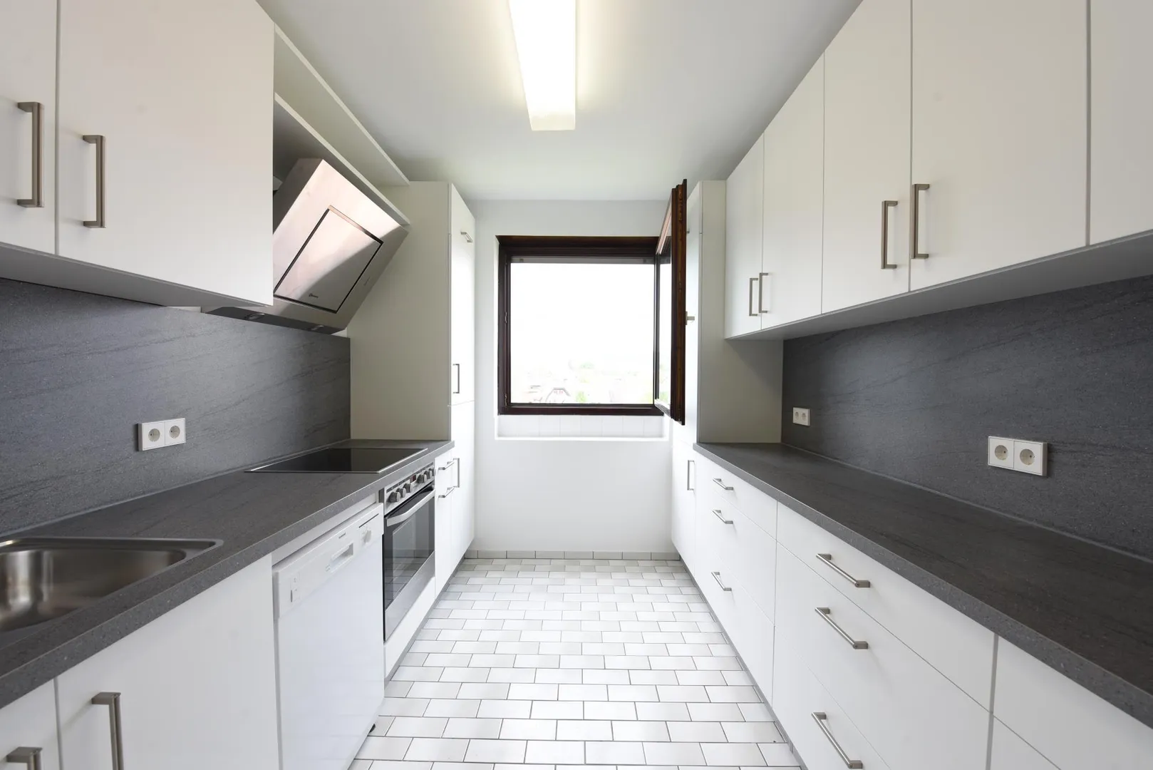 Die Küche ist mit einer Einbauküche mit funktionsfähigen und neuwertigen Elektro-Geräten ausgestattet. Für die künftige Funktionsfähigkeit der E-Geräte übernimmt der Vermieter keine Haftung.