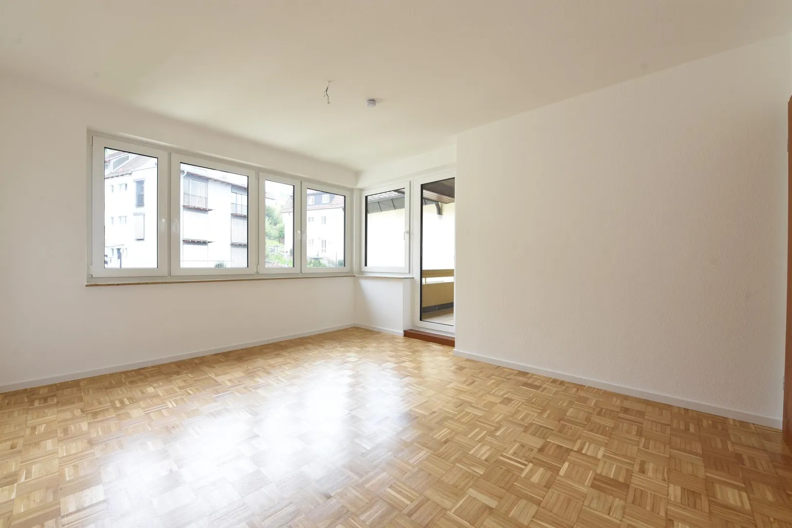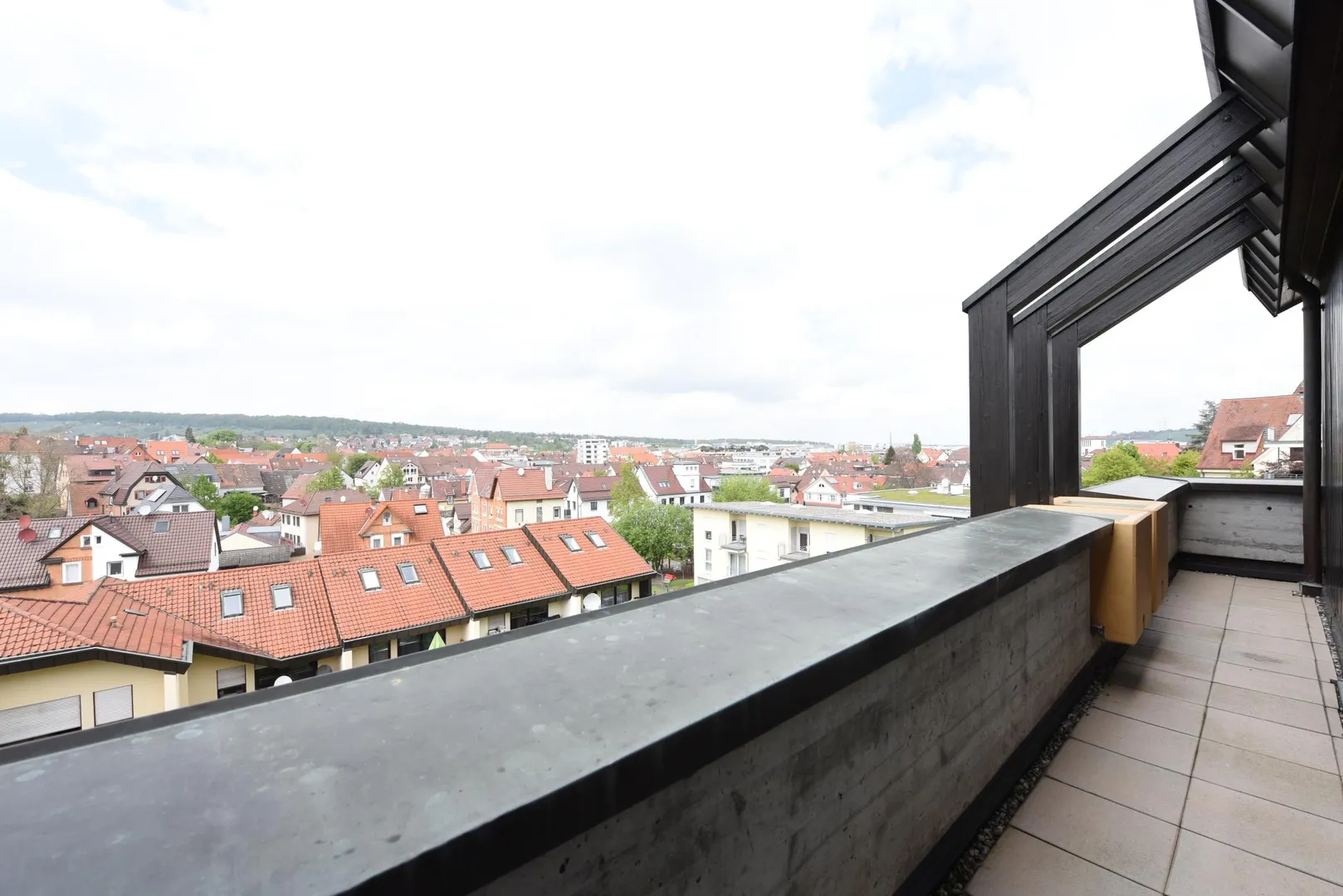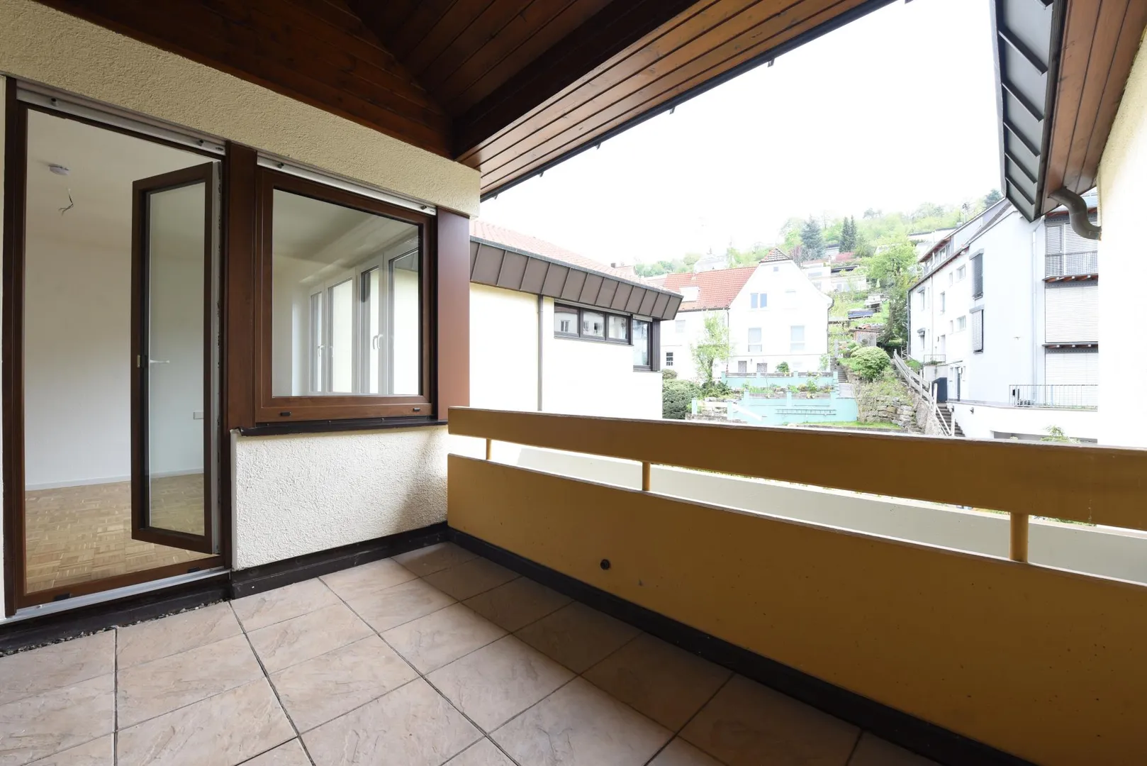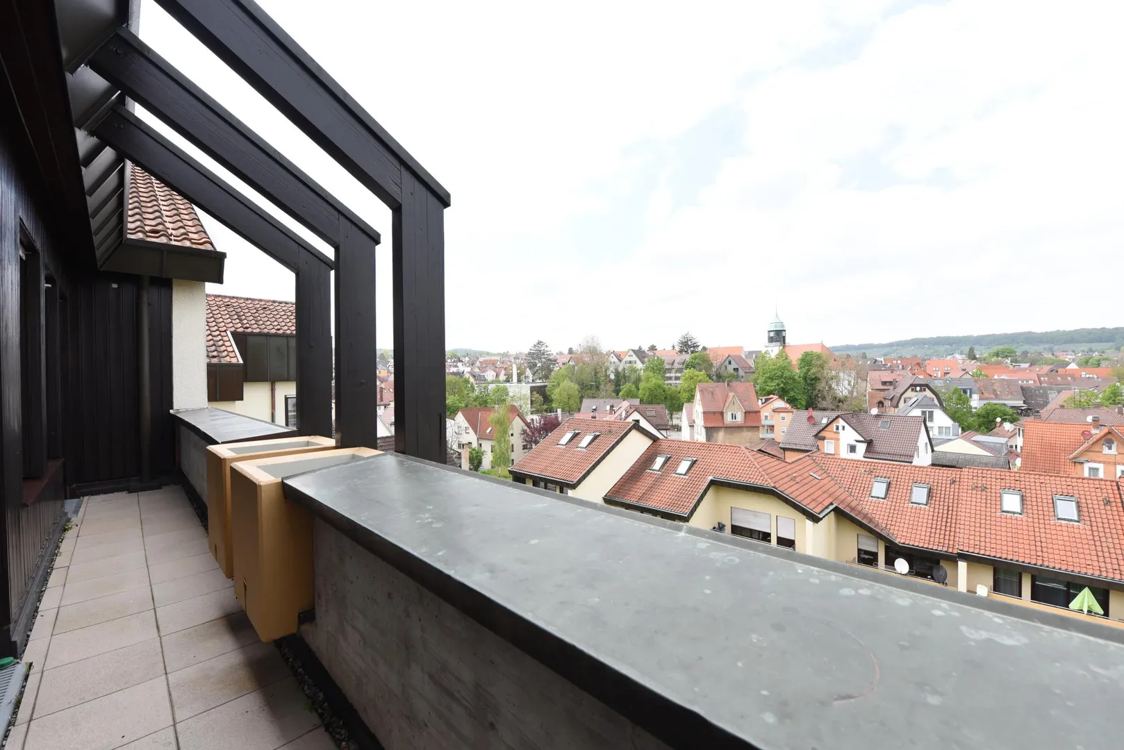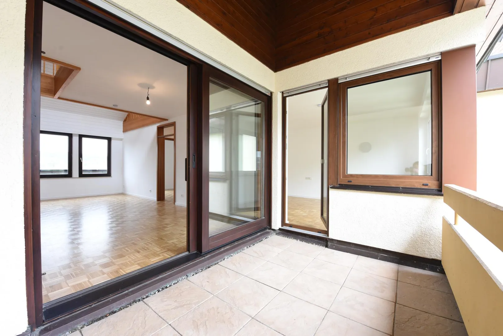 Der ca. 7 m² große Nord/West-Balkon mit Fernblick ist über das Wohnzimmer sowie über das Arbeits-/Kinderzimmer begehbar.