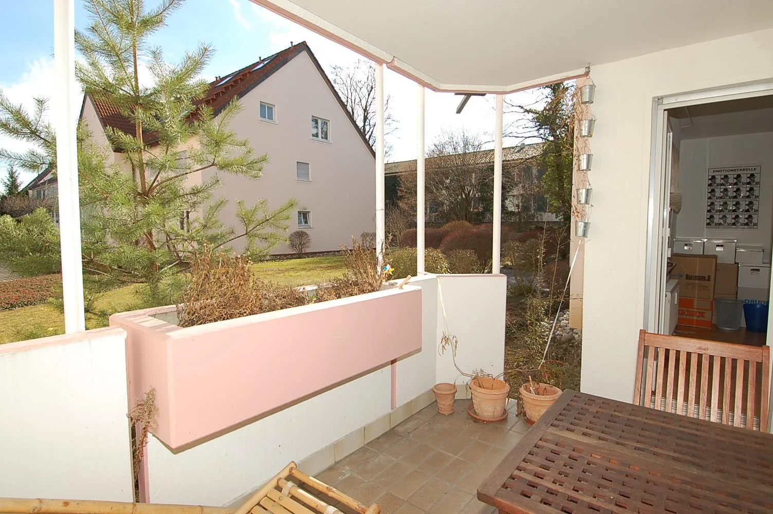 Die Zimmer und der Balkon sind nach Süden ausgerichtet. Der Balkon ist überdacht und ca. 7m² groß.