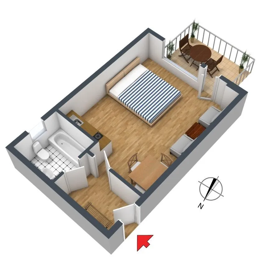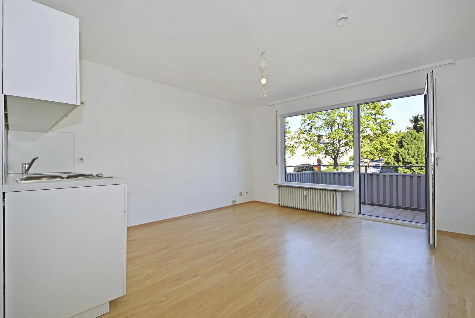 Diese modernisierte 1-Zimmer-Wohnung befindet sich im 1. Obergeschoss.