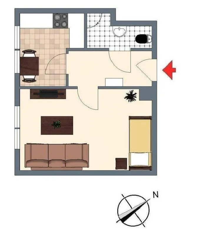 Diese schnuckelige 1-Zimmer-Wohnung befindet sich im 2.Obergeschoss eines 8-Familien-Reiheneckhauses.
