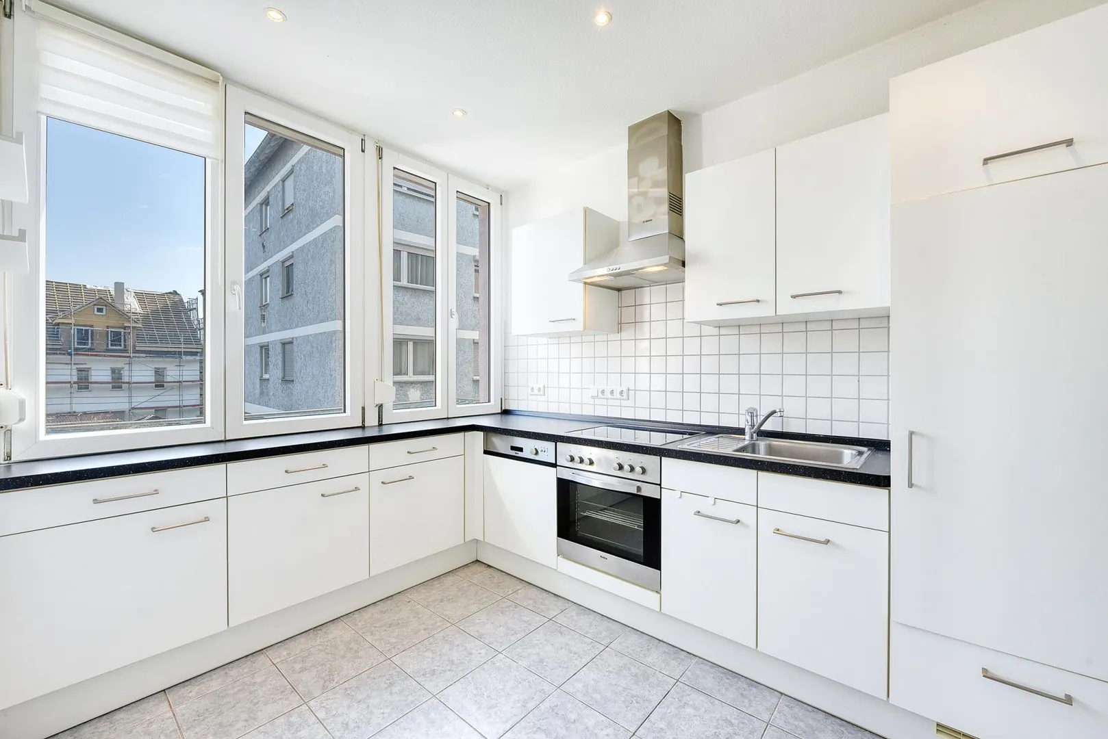 Die Küche ist mit einer Einbauküche ausgestattet. Die Einbauküche verfügt über alle notwendigen E-Geräte sowie Unter- und Oberschränke.
