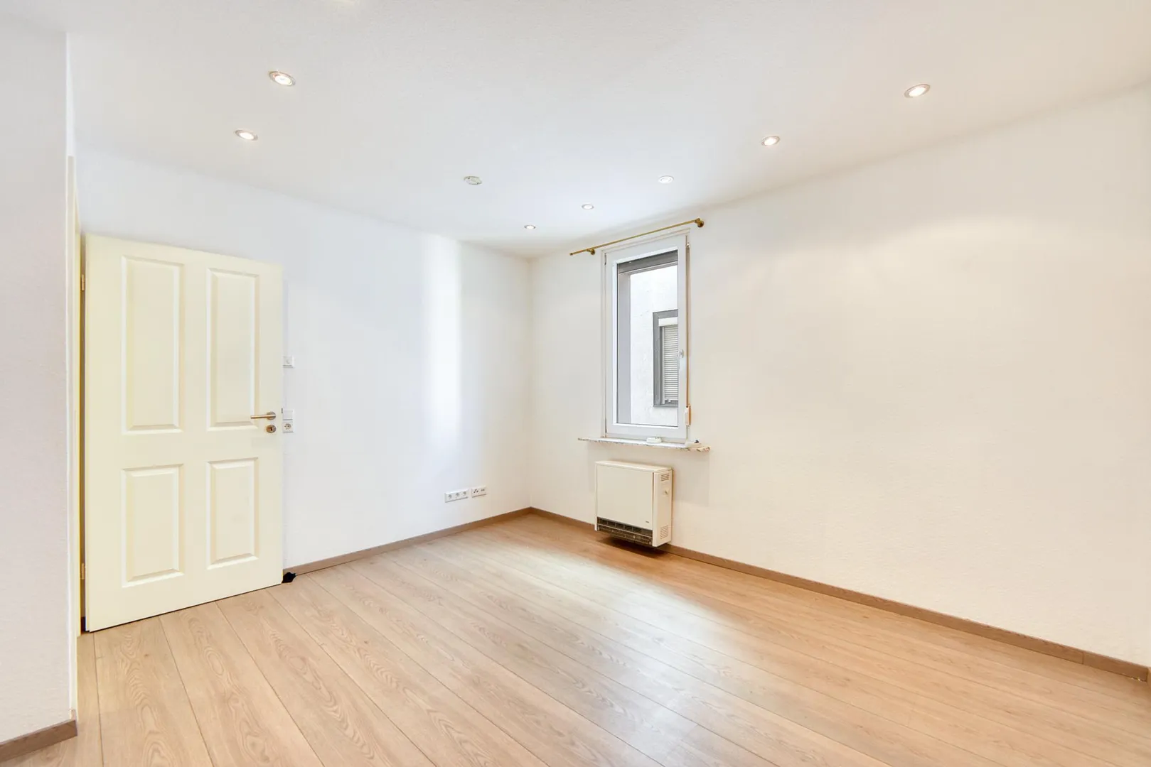Die Wände sind mit Raufaser tapeziert und weiß gestrichen. Die Wohnung wird nicht frisch gestrichen übergeben. Die Decken sind abgehängt und mit Halogenlampen ausgestattet. Die Raumhöhen betragen ca. 2,45 Meter.
